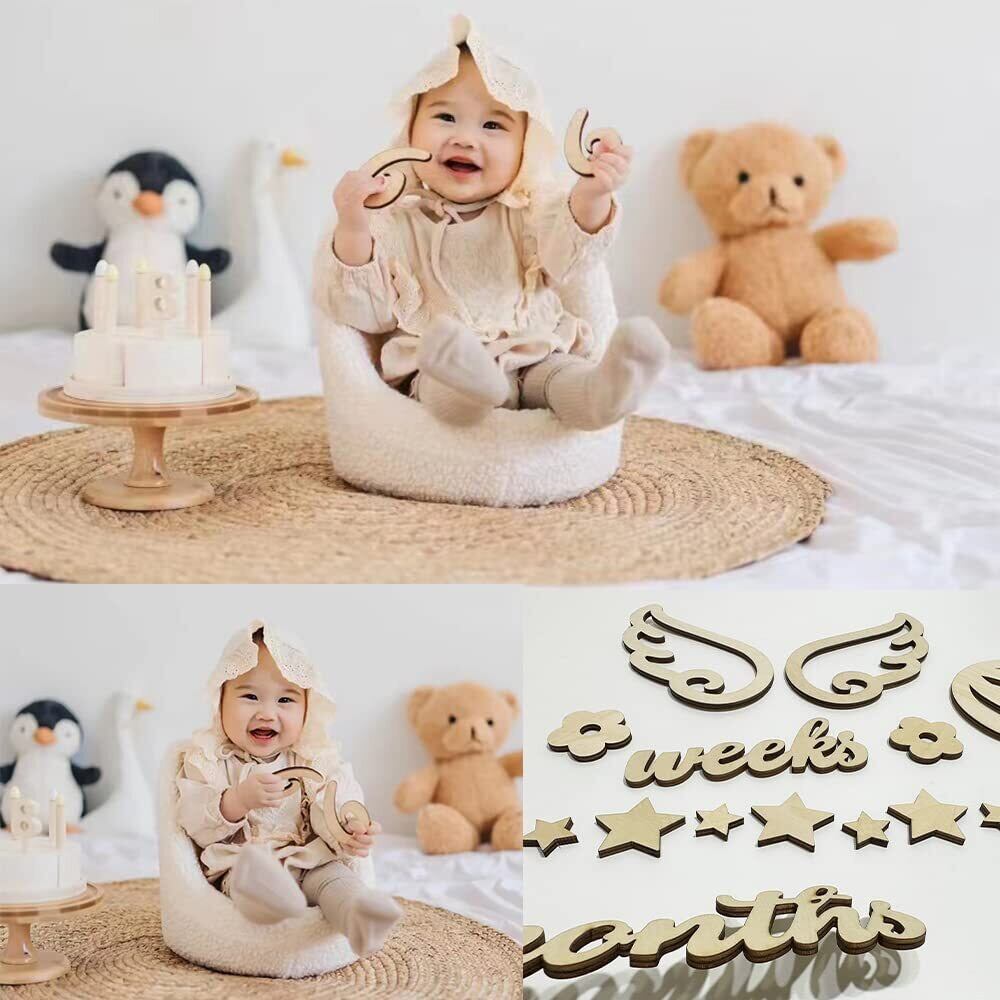 月齢フォト 木製 レターバナー 月齢フォト 月齢フォトグッズ ニューボーンフォト ウッドレター 月齢カード 49枚セット 記念日フォト マンスリーカード 撮影道具 記念写真 出産祝い 成長記録 月齢カード プレゼント 誕生日