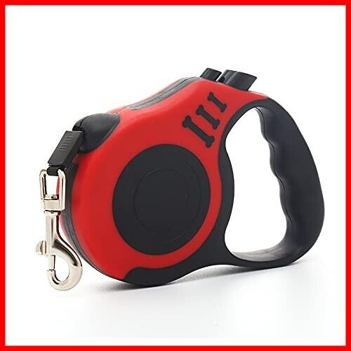 犬用リード 伸縮リード 5m 巻き取り式 ドッグリード 自動巻き取り式 荷重15kg 小・中型犬対応 お出かけ 滑り止め 散歩 軽量 (レッド)