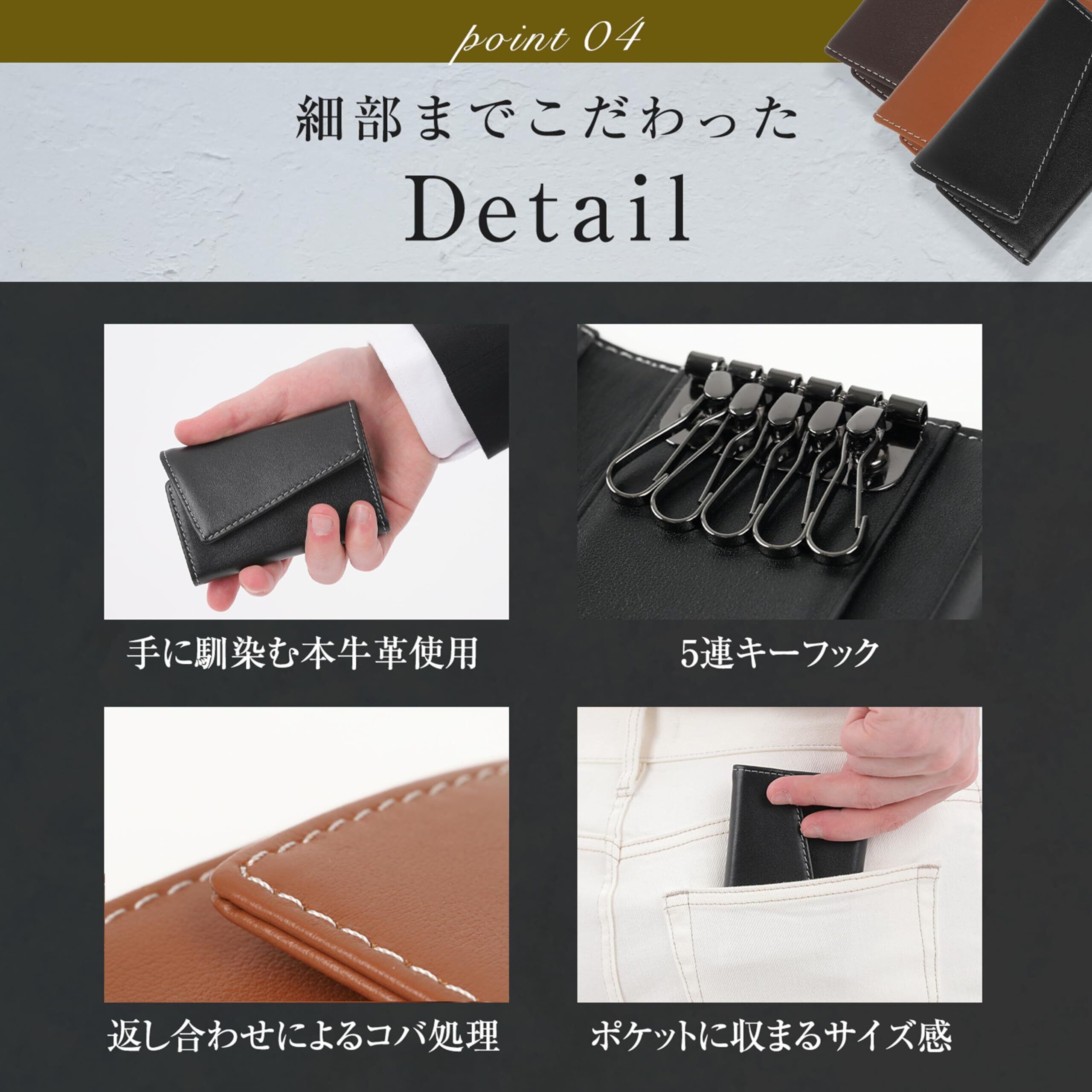 【商品】大人が持つに相応しい洗練されたデザインと機能性を備えた3つ折りキーケース。シンプルながらも飽きることなく、男女を問わず幅広い方々にお使いいただけます。厳選されたパーツから丁寧なコバ処理に至るまで、こだわりを感じていただける仕上がりになっております。化粧箱に入れてお届けしますのでプレゼントとしてもご利用いただけます。