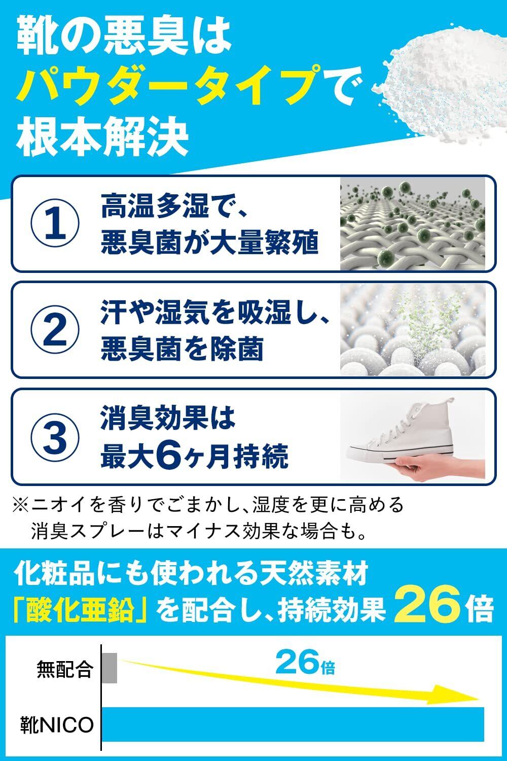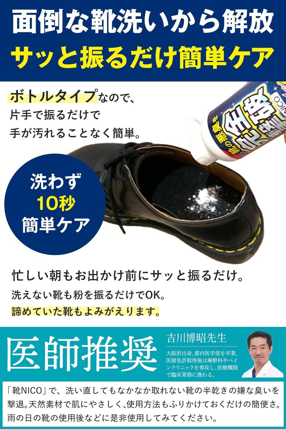 【日本製 大容量80g】靴 消臭【医師推奨】【靴の悪臭菌を99.7%カット】 臭い消し 粉 パウダー 除菌 無香料 フットスクラブ 中敷 最強 靴NICO