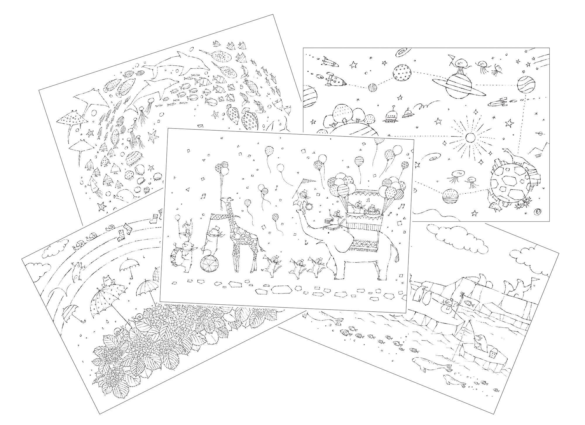 線の細い優しいタッチのイラストで、色がはみ出してもかわいい絵に仕上がり、小さなお子様でも楽しめます。