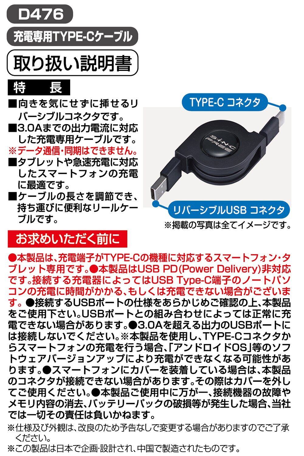 セイワ(SEIWA) 車内用品 スマホ充電用コード リール式 TYPE-Cケーブル D476