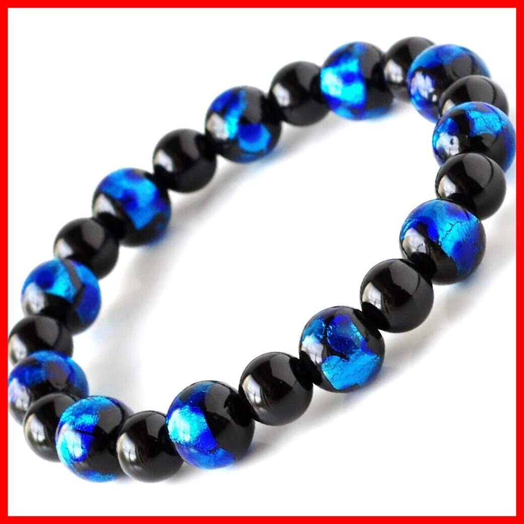 天然石 パワーストーン ブレスレット ホタルガラス オニキス メンズ レディース アクセサリー 内径 約16cm