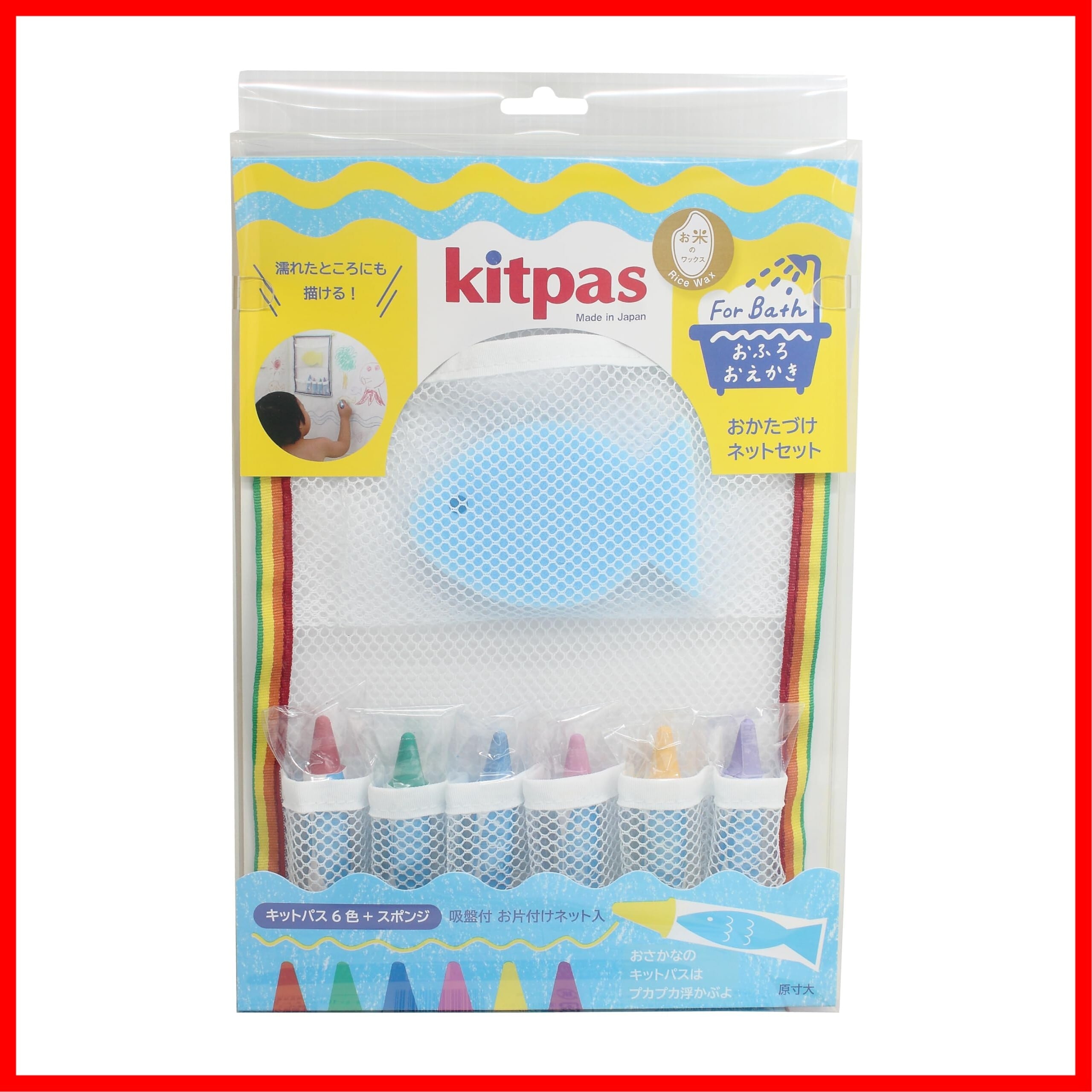 【セット内容】 キットパスforBath 6色セット / 吸盤2個 / 収納ネット1枚 / スポンジ1個