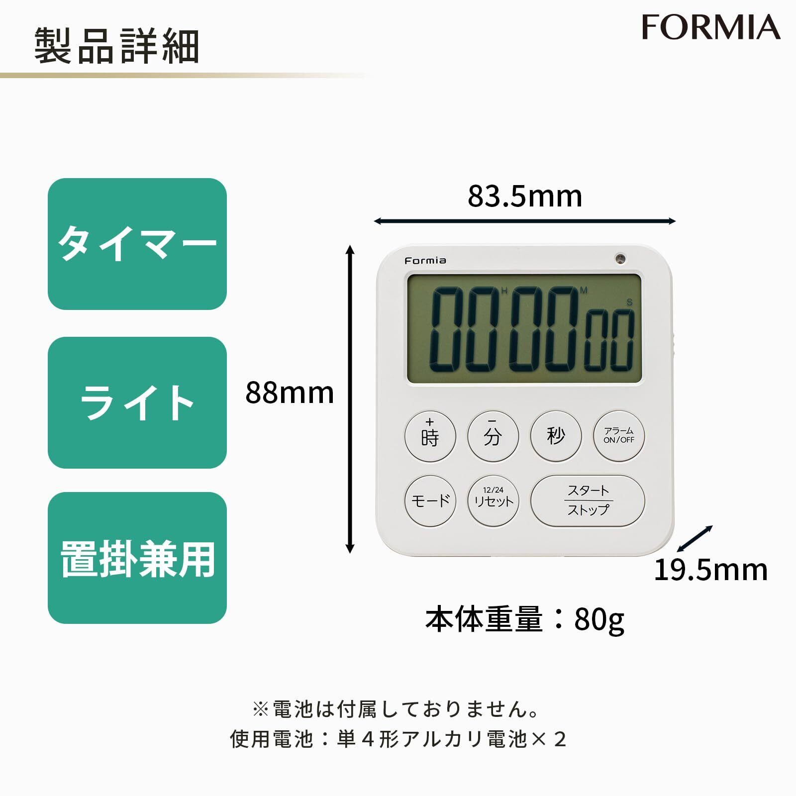 Formia(フォルミア) キッチンタイマー カウントダウン 計測 目覚まし時計 置き 卓上 置き掛け兼用 デジタル 保土ヶ谷電子販売 ホワイト HT-027WH