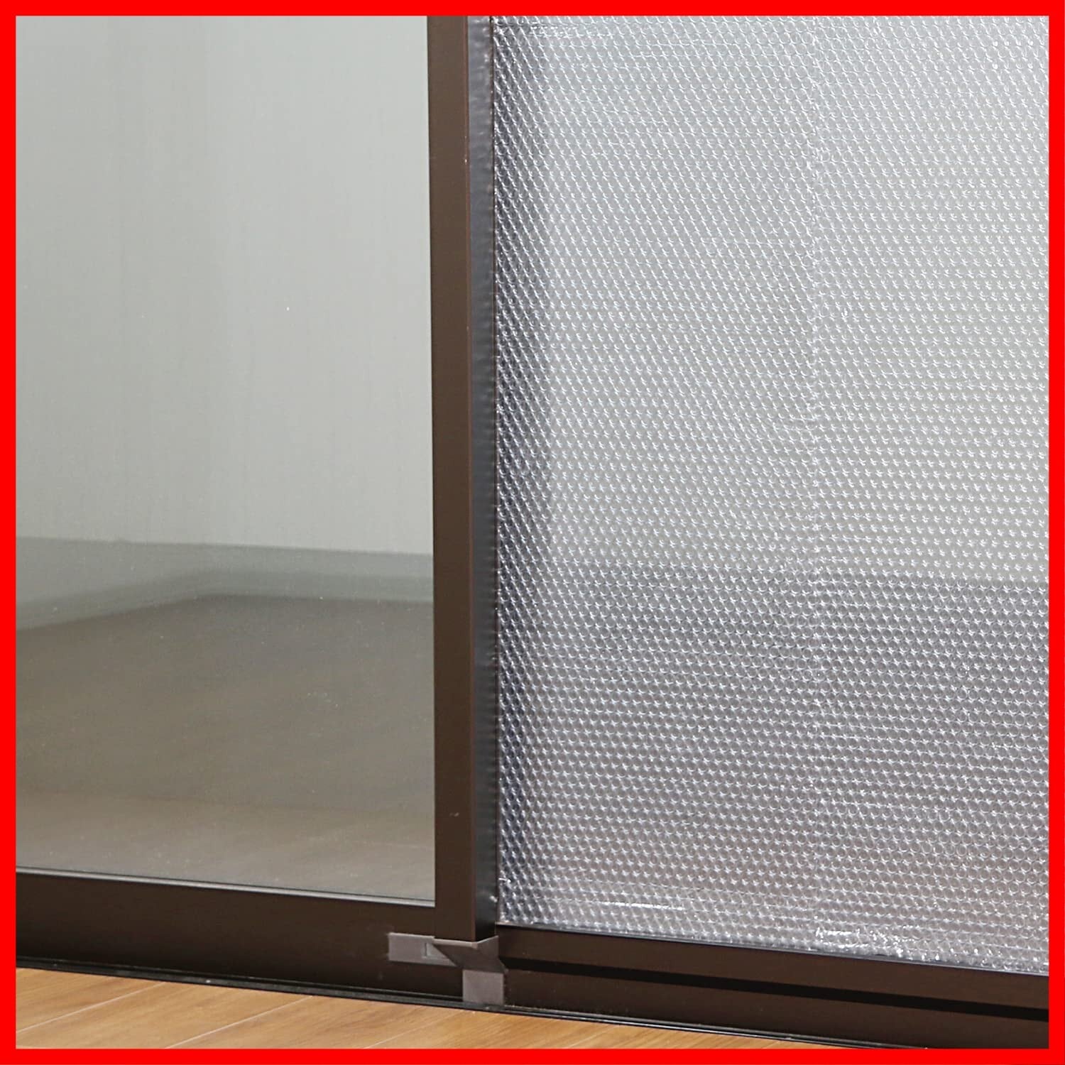 【空気の層を作ることで断熱効果を発揮】:プチプチをフィルムで挟んだ三層構造。窓とシートの間に空気層を作り断熱効果を発揮。