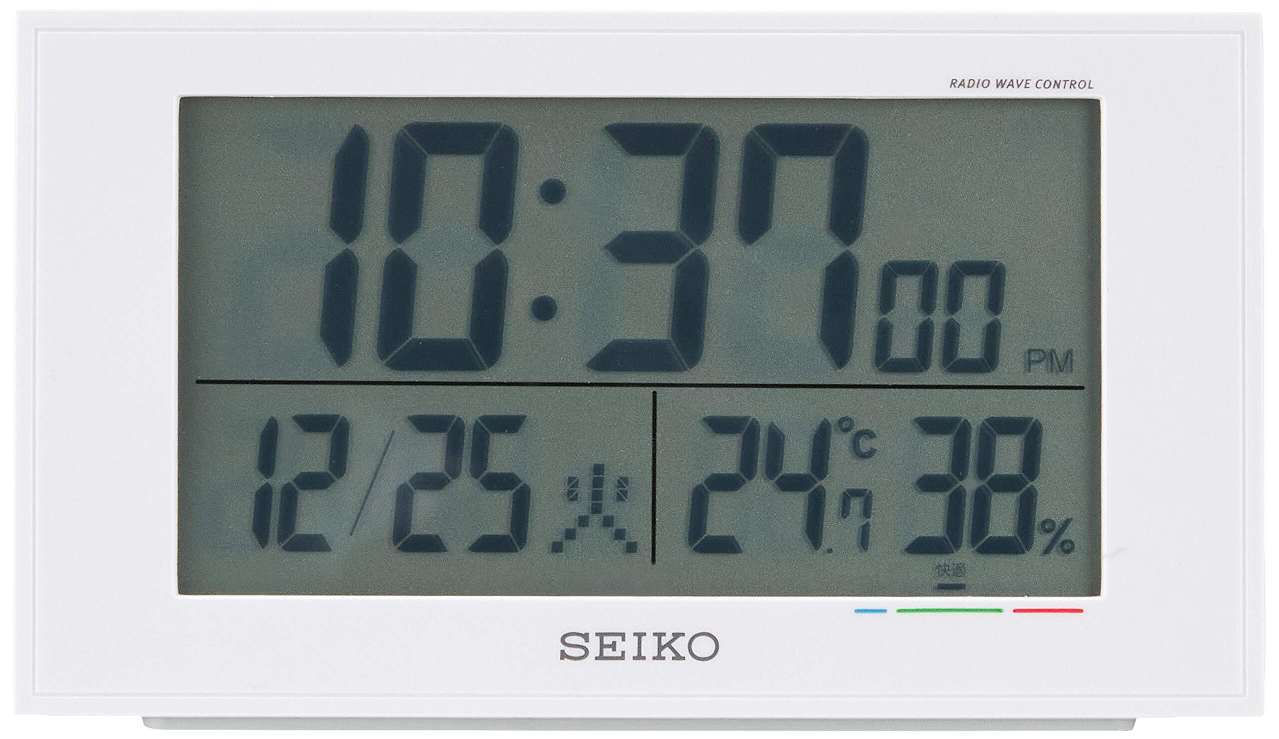 セイコー クロック 置き時計 目覚まし時計 電波 デジタル カレンダー 快適度 温度湿度表示 01:白パール 本体サイズ:8.5×14.8×5.3cm BC402W