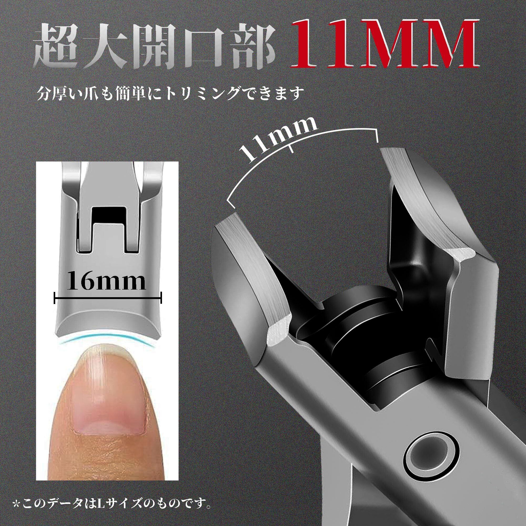【爪切り 新発想:超大開口部11ミリ】分厚い爪、巻き爪、変形爪にお悩みの方へ。11ミリの超大型開口部と職人の技術で切れ味抜群!少しの力でサクサク切れる!力の弱い方やお年寄りでも、男女併用で、手足の爪問わず、ご使用いただけます。