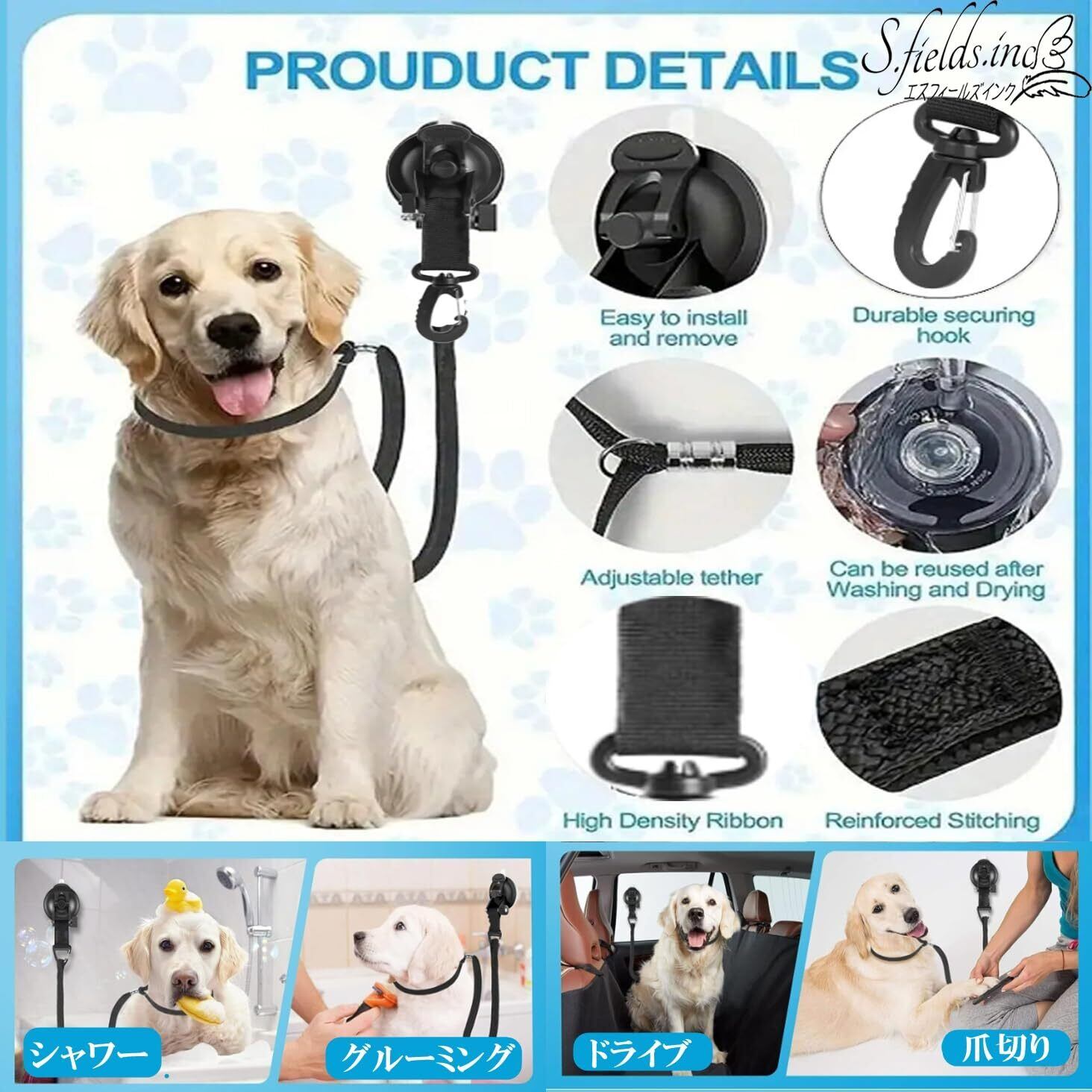 S.fields.inc トリミングシャワーリード 吸盤タイプ グルーミング シャンプー 入浴 犬用 小型~大型犬 (小)