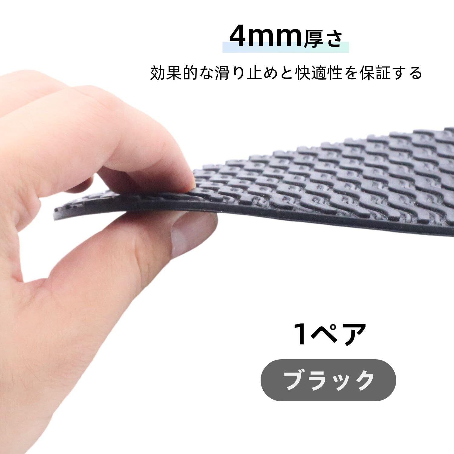 【水波紋デザイン】サイズ:325×130mm、厚さ4mm、ブラック、1ペア。表面に施された水波紋デザインは、濡れた床でも優れた牽引力とグリップ力を提供し、滑りにくさを大幅に向上させます。