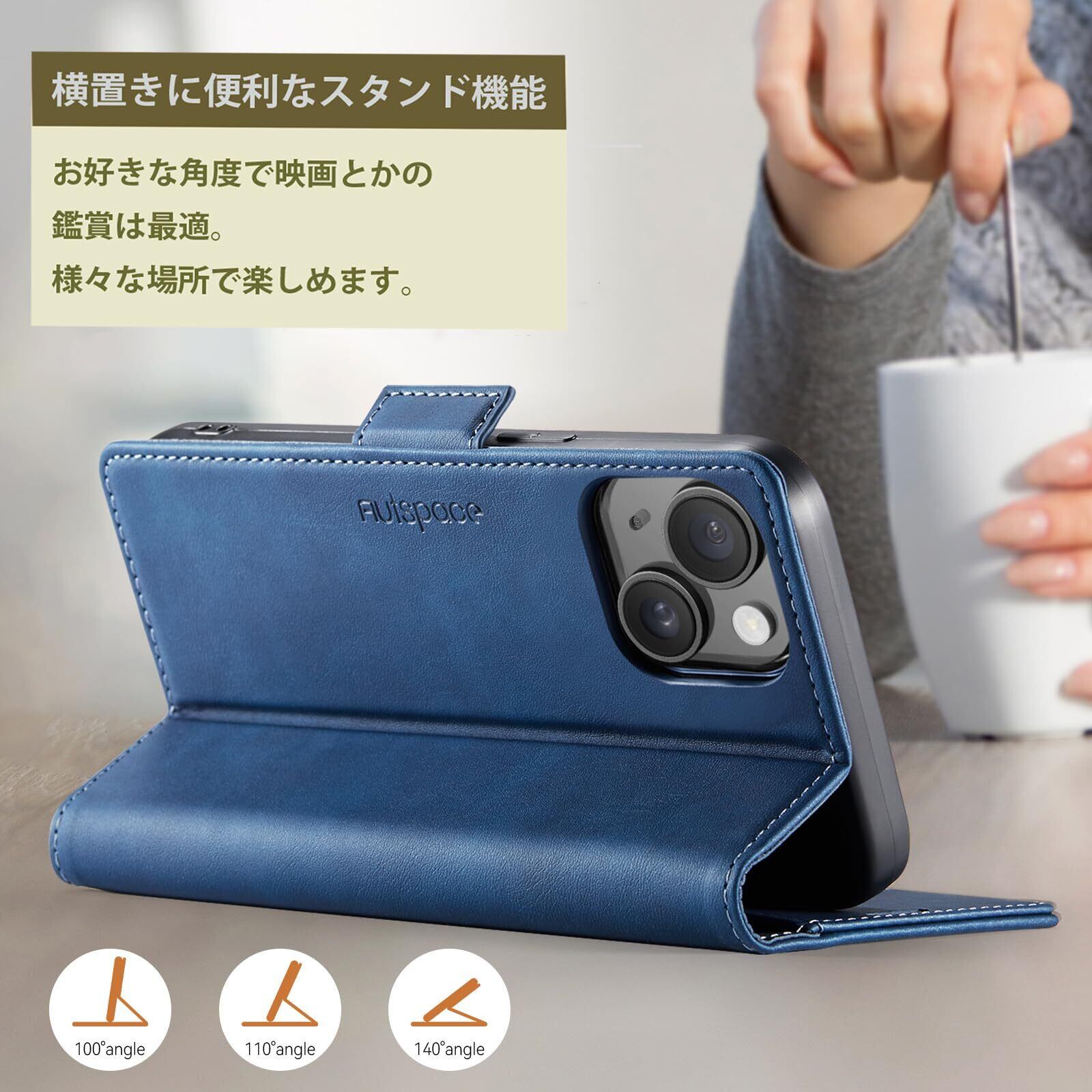 【こだわりの生地】 厳選のこだわりのPUレザーを使用、手に馴染みやすく、季節を選ばない質感。お好きな色を選べ、色合いを楽しみながら長年使用できる素材で。着脱しやすく、内側は柔らかいマットなTPU素材を採用して、高級感を持ちながらスマホを全面保護している手帳型ケースです。傷やホコリを防ぐこともでき滑り止めと指紋防止の効果を発揮します。