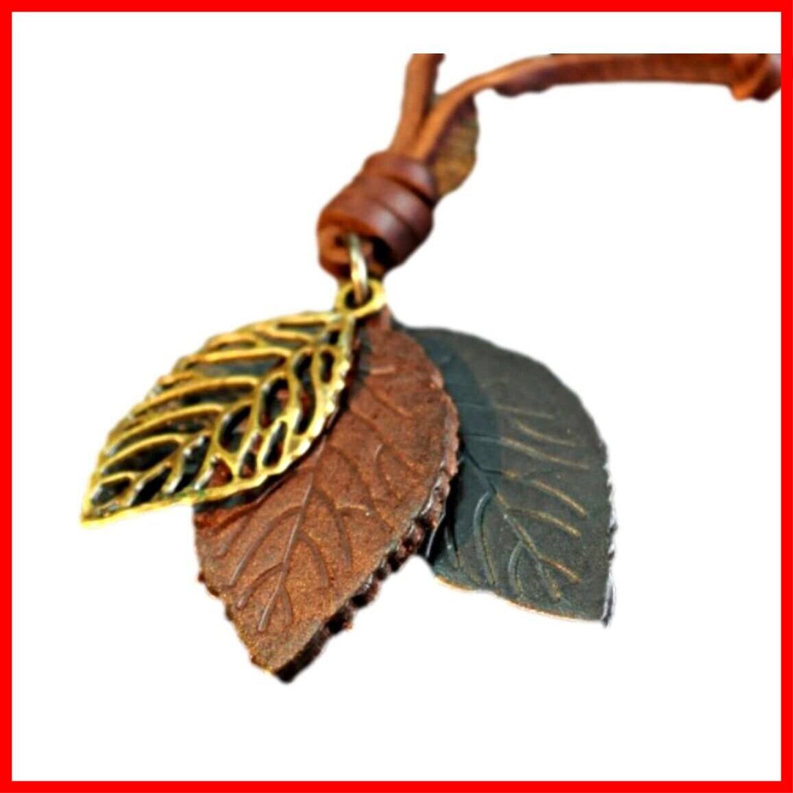メタル、レザーを使ったカジュアルな木の葉モチーフペンダントのご紹介です。(ダークブラウン)