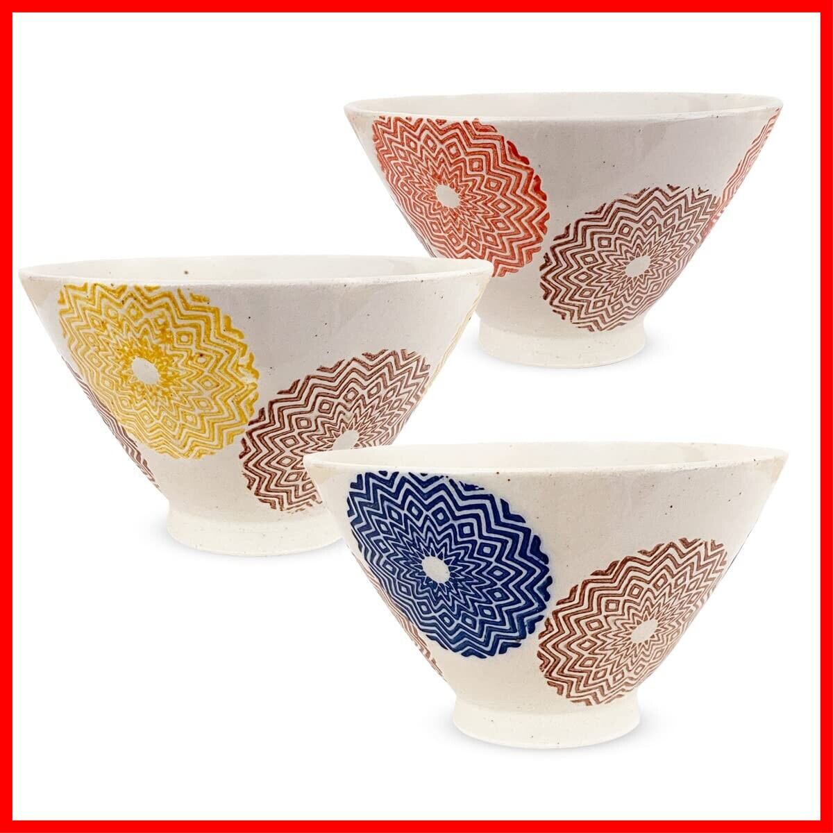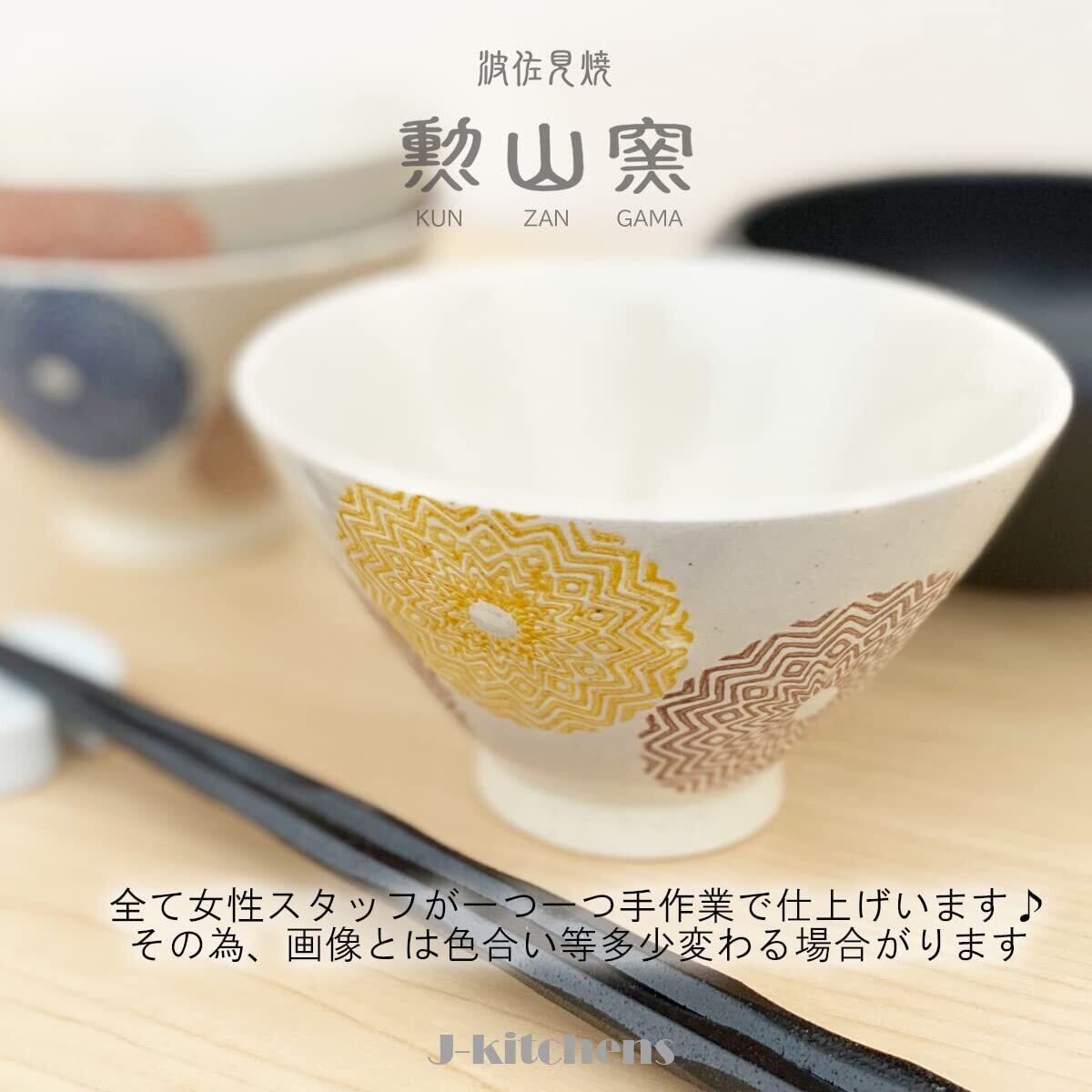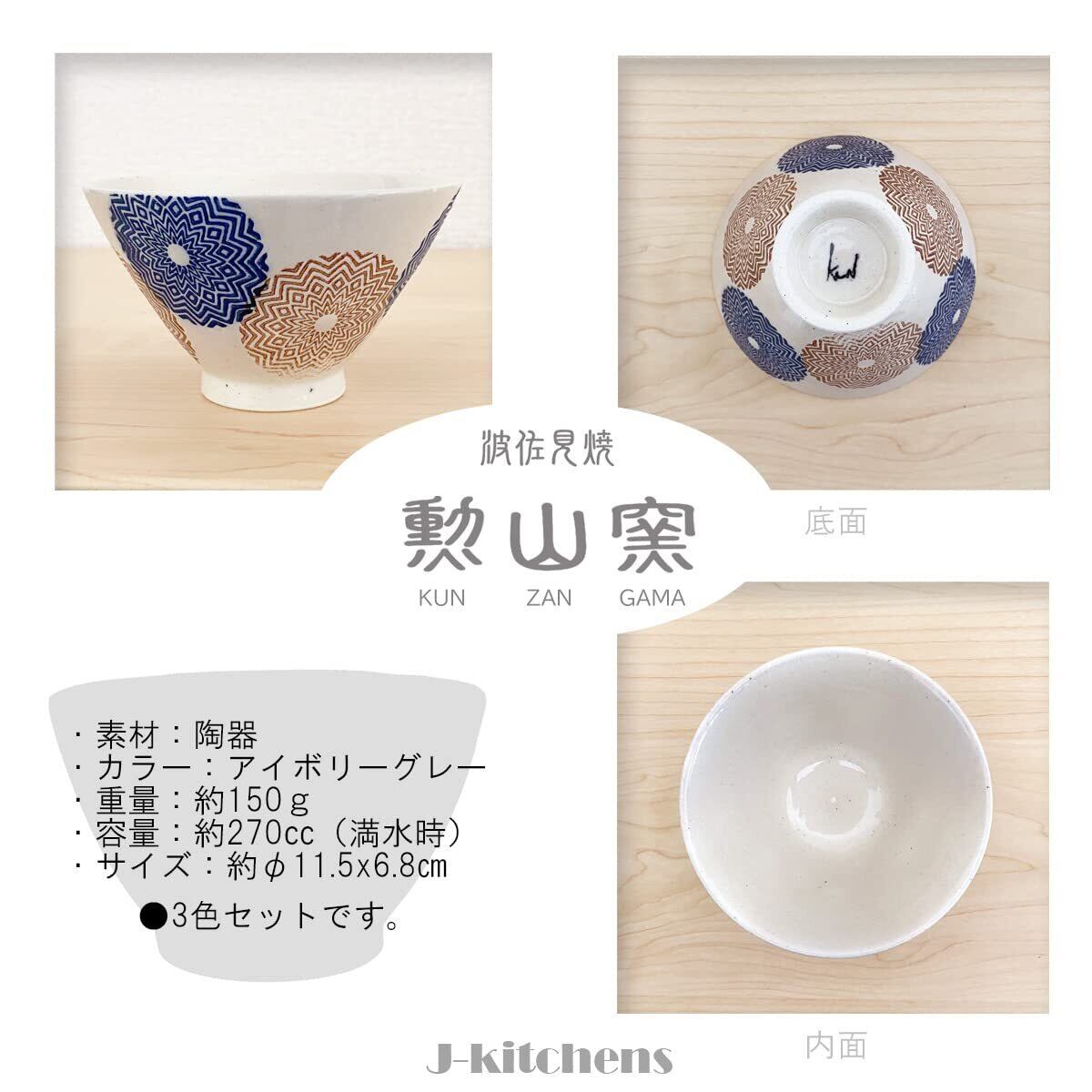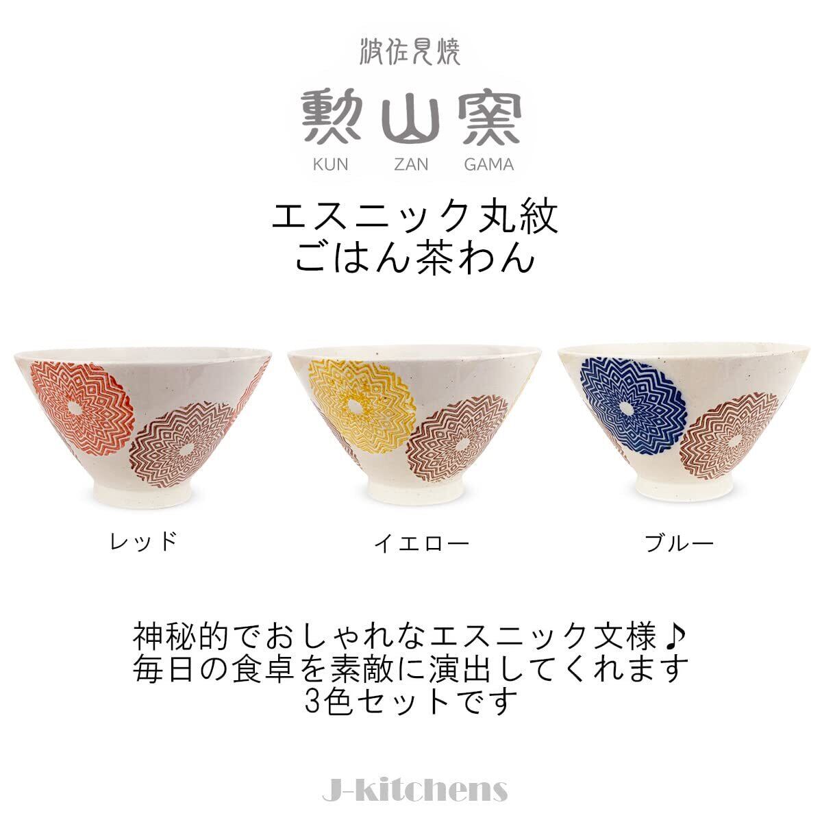 J-kitchens 勲山窯 茶碗 3個セット直径 11.5cm 高さ 6.8cm エスニック丸紋 波佐見焼 日本製