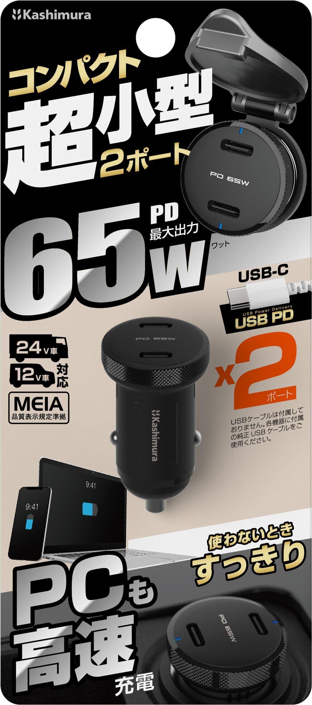 カシムラ USB PD搭載のクルマ用ハイパワーUSB電源 最大出力65W対応 NDC-062