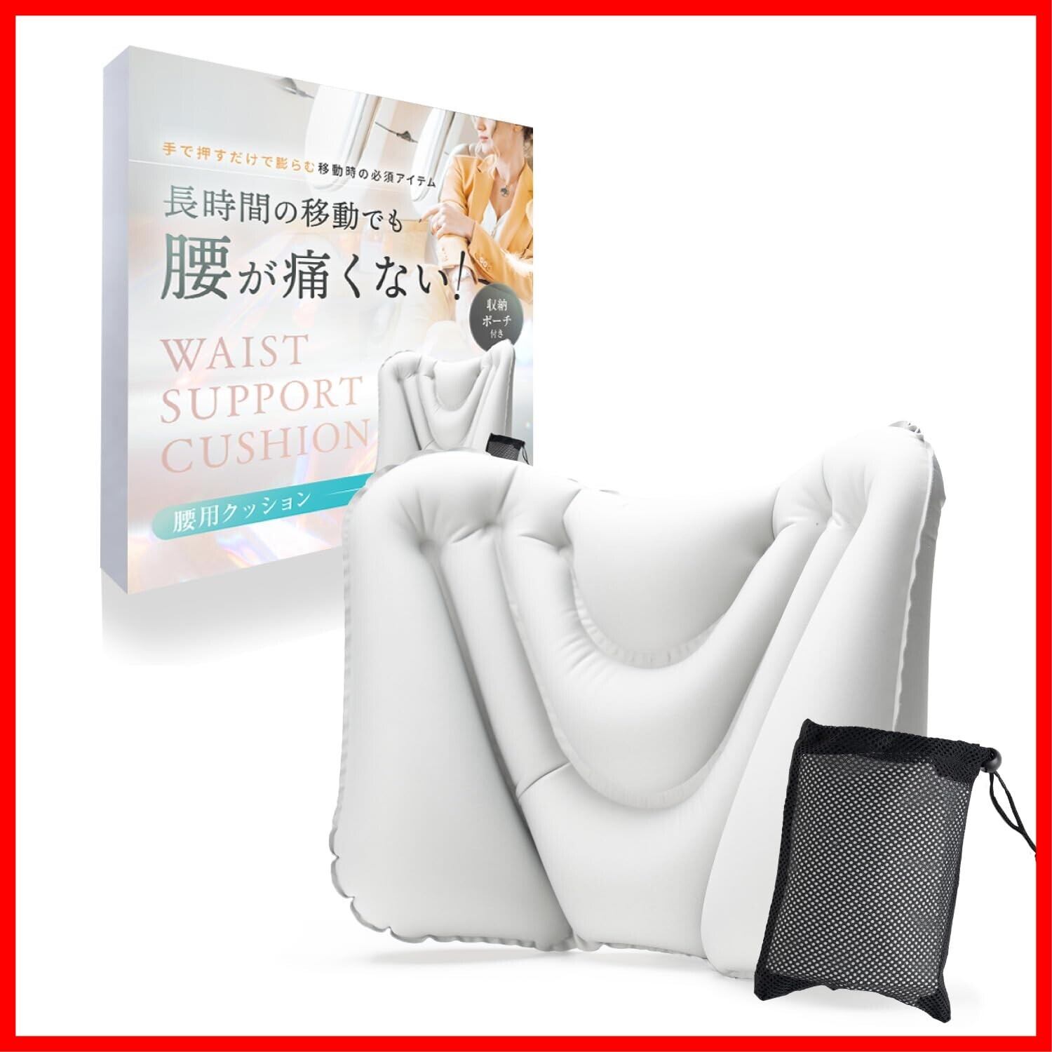 【【選ばれる理由】口を付けずに膨らむから衛生的。口紅を塗られる女性の方に特におすすめです!エアー式で軽量コンパクトに収納できます。旅行バッグやビジネスバッグの中に入れても邪魔になりません。人間工学に基づいた腰をしっかり包み込んでくれる形状が特徴です。