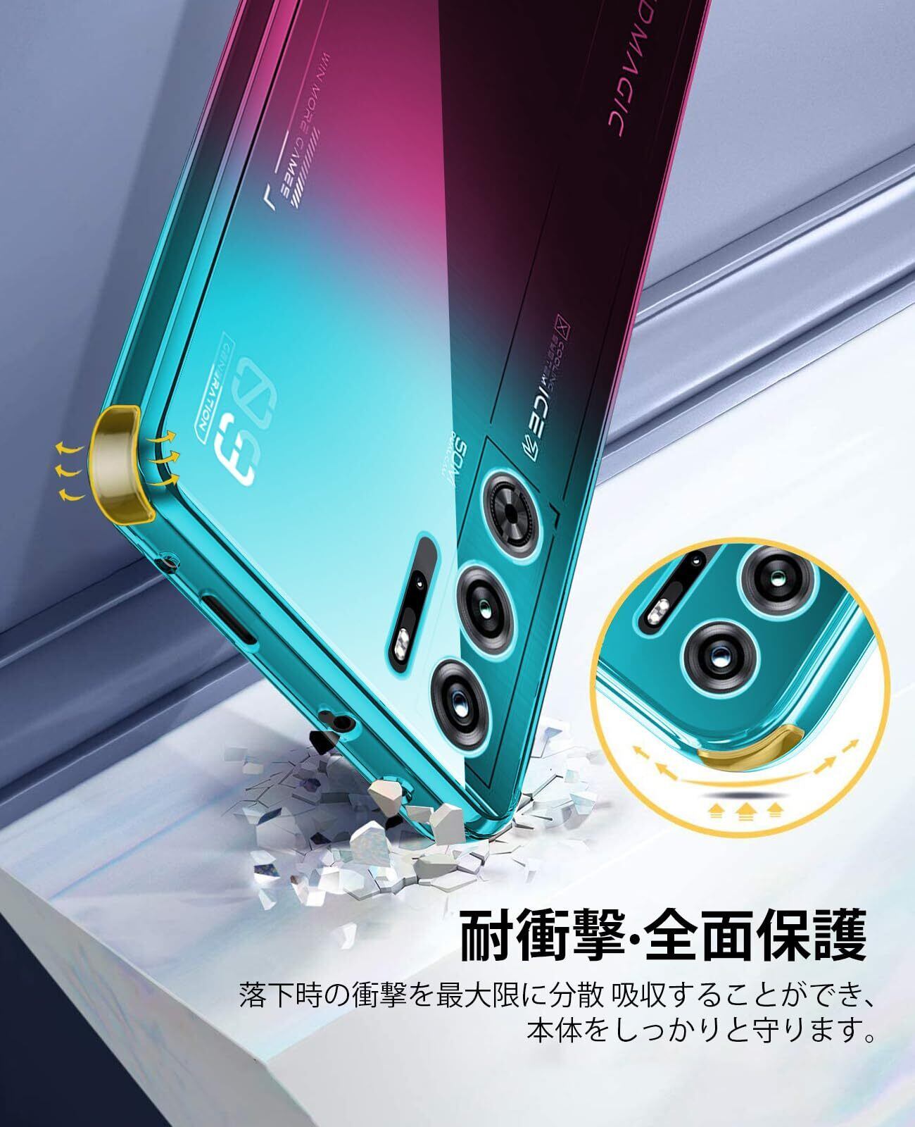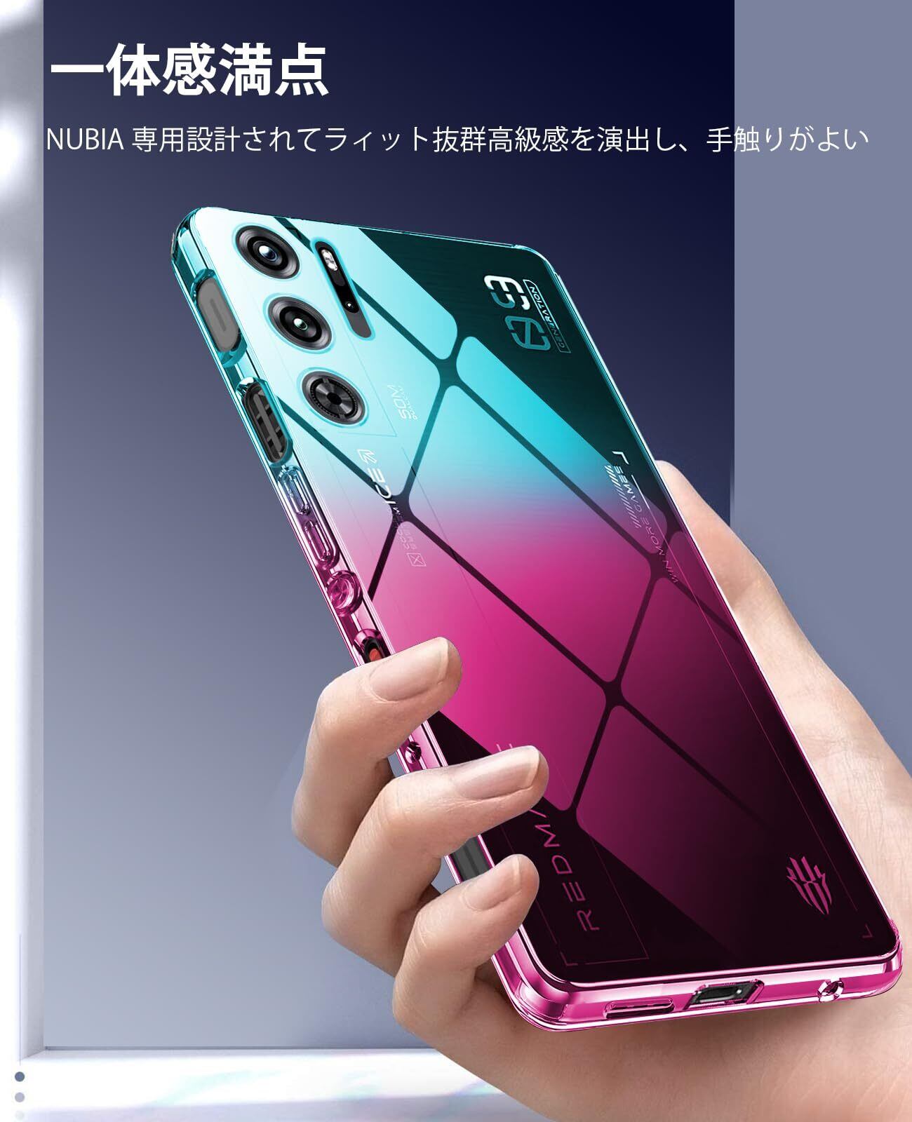 【オシャレで高級感ある外観】RedMagic 9 Pro 用ケースはグラデーションのデザインで、端末の色により、違う色効果を現れ、美しいデザインをより一層印象づける魅力がある。本体とピッタリ密着して違和感がない一体感がすごく格好いいです。