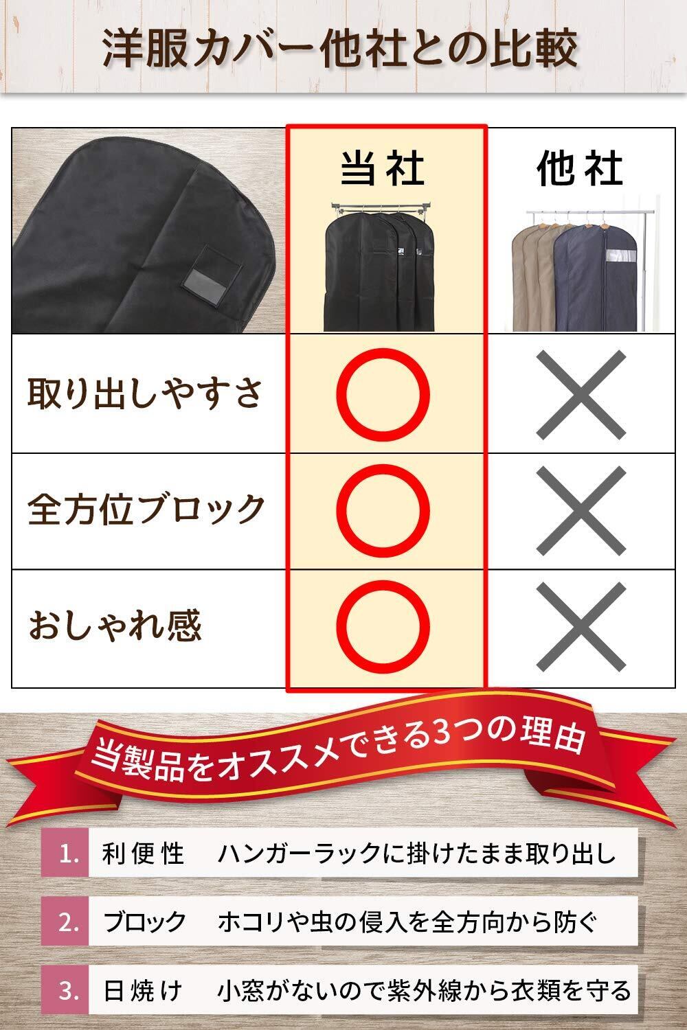 【虫・ホコリを全方位ブロック】衣類の天敵である、虫食い・ほこり・日焼け・湿気の”4大害悪”を全方位からブロックします。類似品の多くは衣類カバーの下部がオープンの状態になっています。RATOM製品は、底面も縫い付けをして、下から侵入するホコリや害虫をブロックできます。衣類カバーに洋服を収納するだけで4大害悪から洋服を守ることができます。