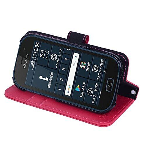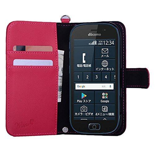 wisers らくらくスマートフォン me F-03K 対応 手帳型スマホケース (ピンク) ストラップ 2種付き (ハンドストラップ/ネックストラップ) 2018 新型
