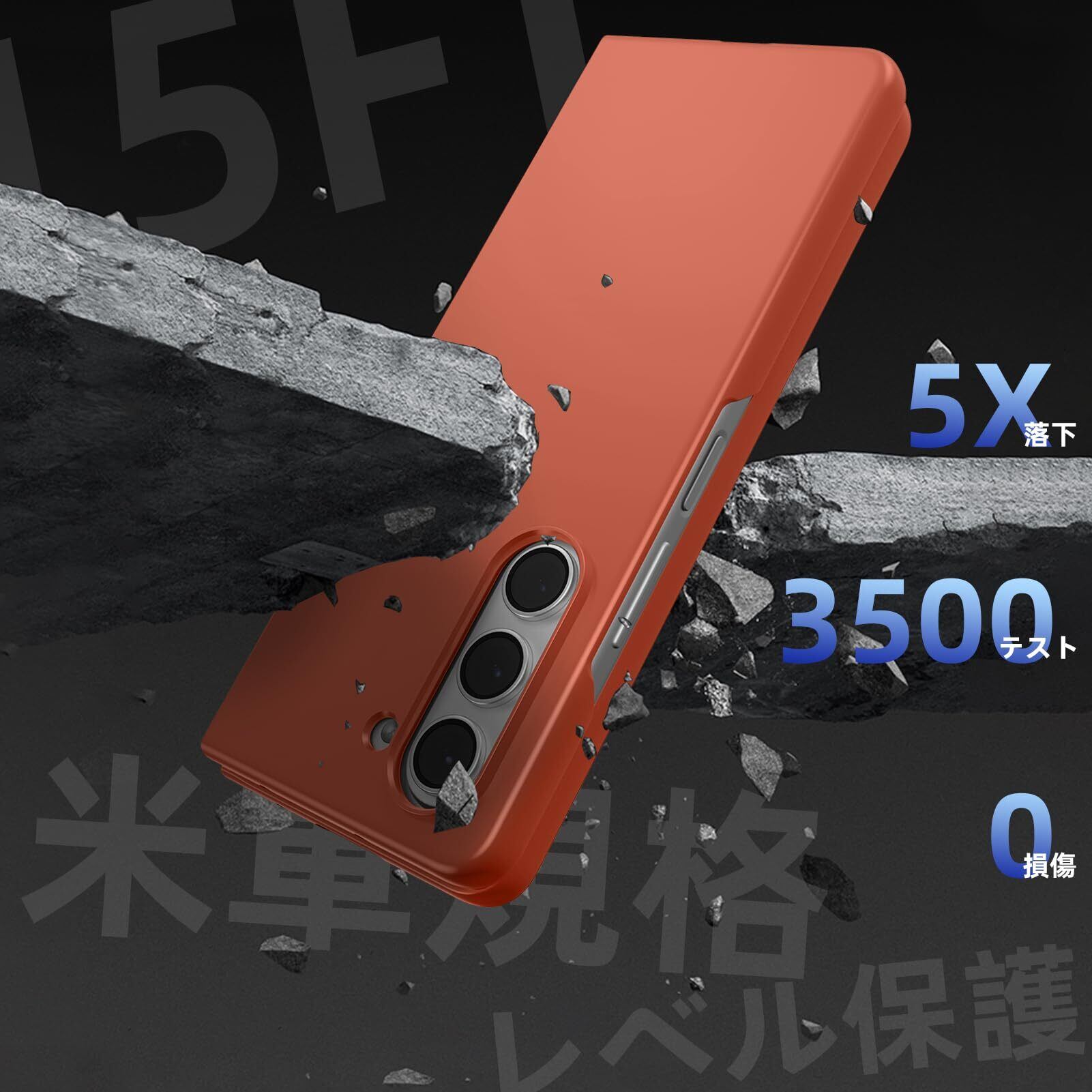 Galaxy Z Fold5 ケース 薄型 人気 軽量 黄ばみ防止 SC-55D/SCG22 スマホケース 衝撃吸収 PC素材 シンプル ハード サムスン レンズ保護 衝撃吸収 耐久 人気 携帯カバー オレンジ -15-ZFOLD5-12