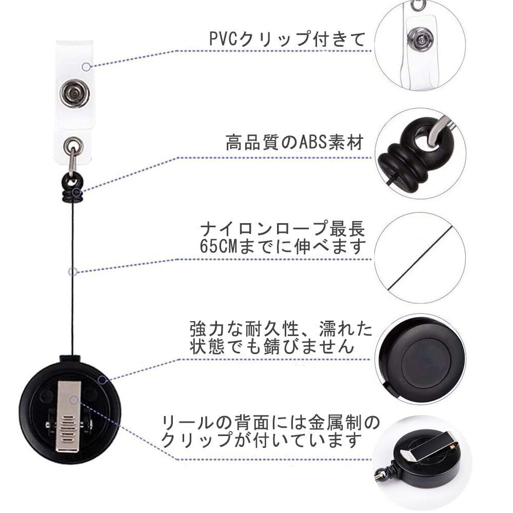 DFsucces 吊り下げ名札用リール 5個セット リール 名札 リールストラップ 最長65cm IDカードリール 落下防止 錆び対策