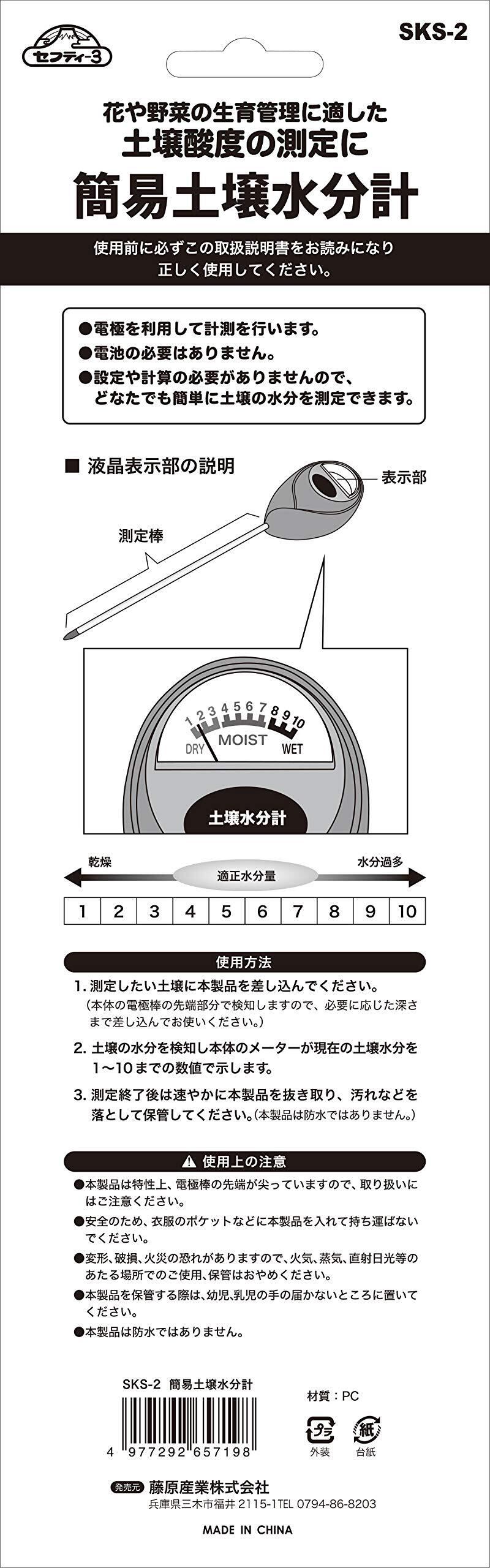 セフティー3(Safety-3) 簡易土壌水分計 SKS-2 電池不要 花や野菜の生育管理 測定可能水分:1~10