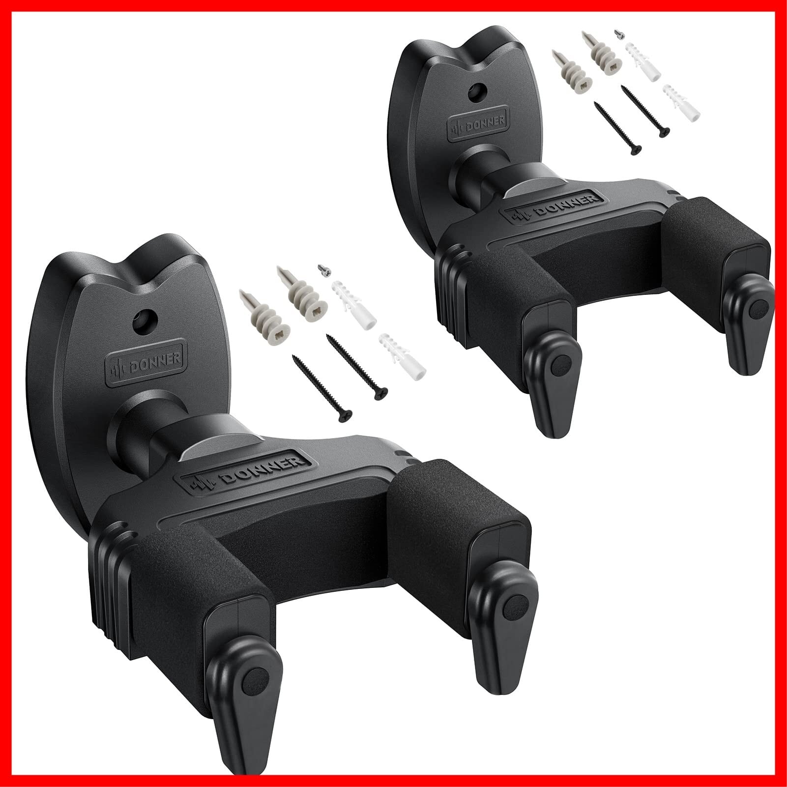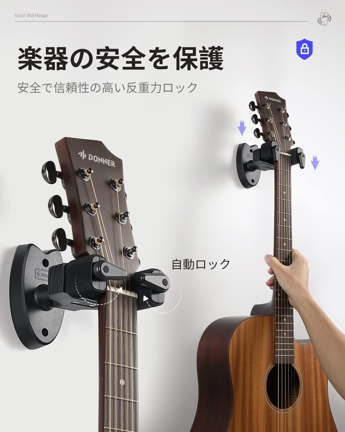Donner ギターハンガー 壁掛け 自動ロック ネジ付 ギターフック 高強度 ギターホルダー ベース/エレキギター/マンドリン適用 ブラック (2個)