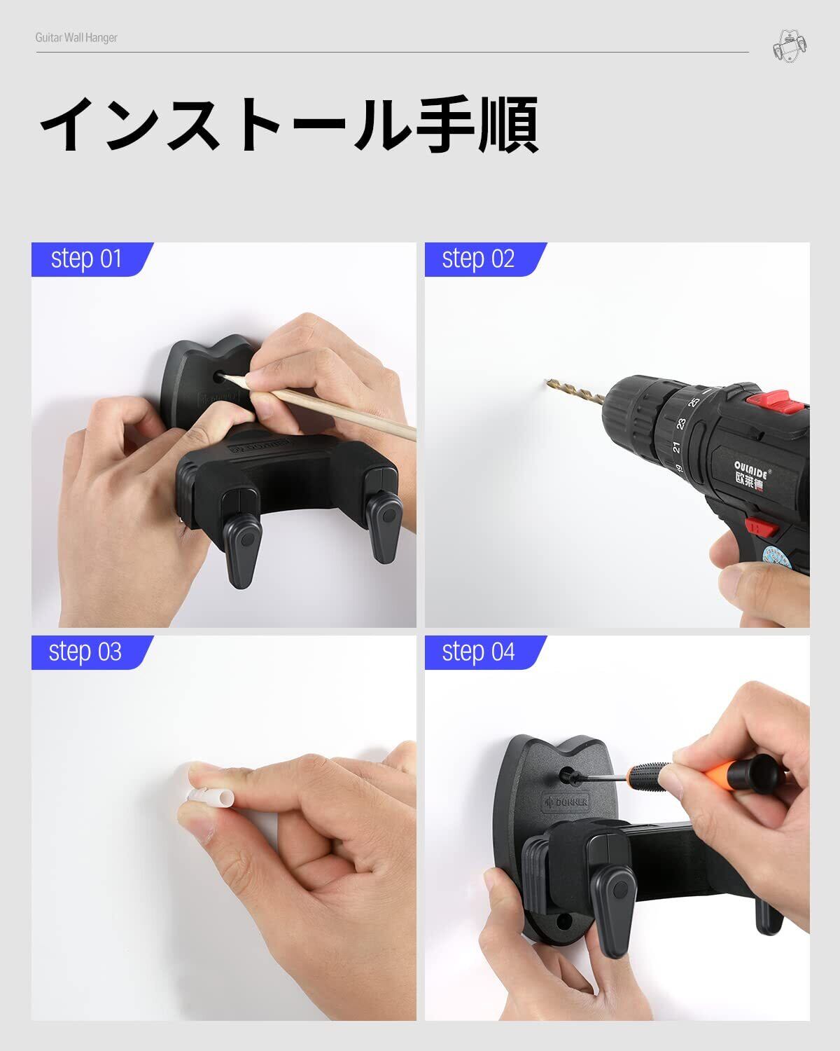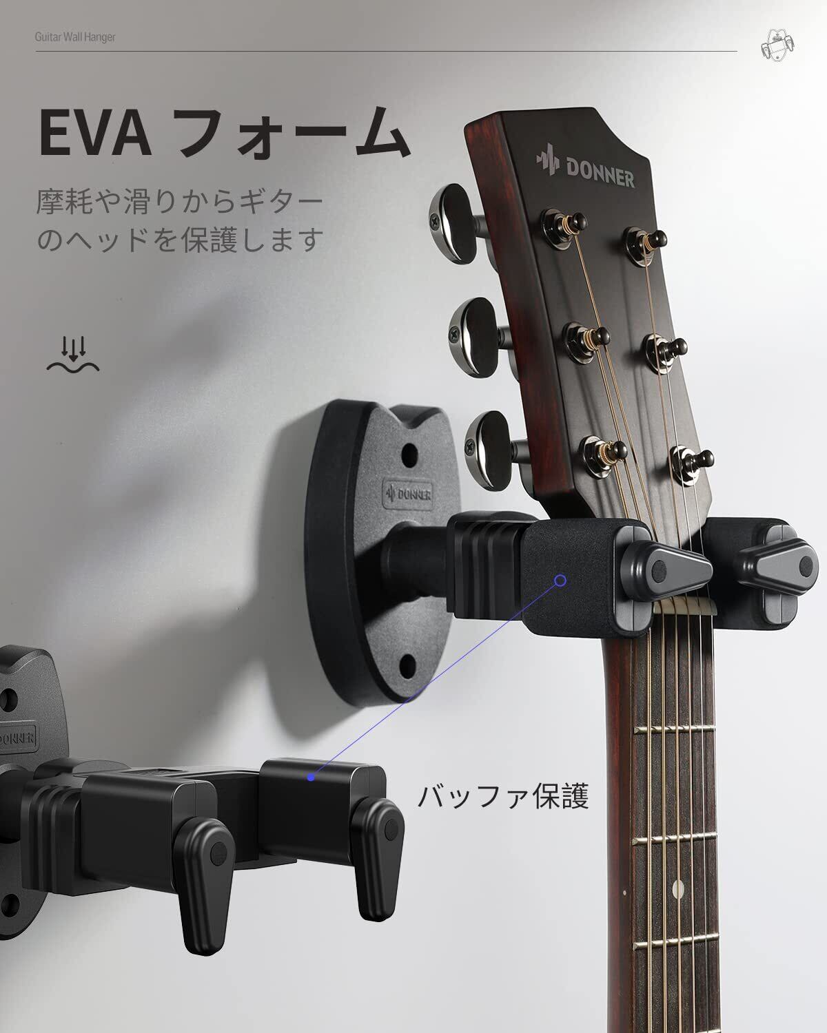 【製品仕様】サイズ:105×140×110mm;パッケージ内容:2×Donner壁掛けギターハンガー