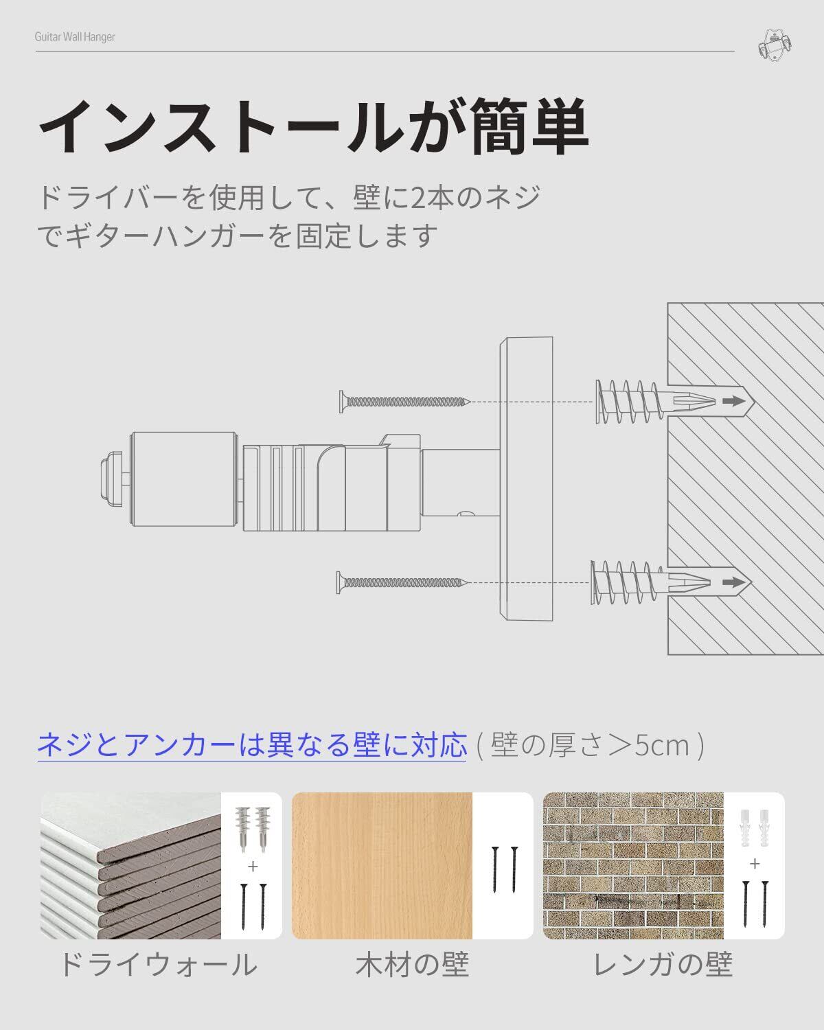 【省スペース】壁取り付けギターフックは、部屋のスペースを節約するのに役立ちます。ギターを取ったり置いたりすることもより便利になります。