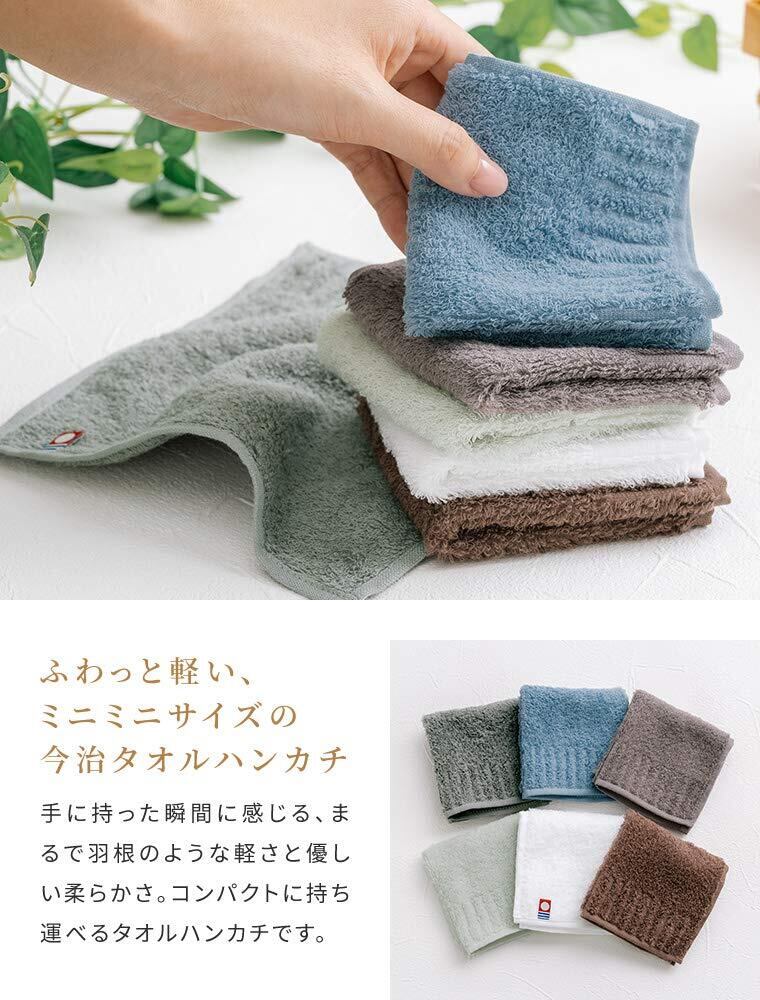 【ふわっと軽い、ミニミニサイズの今治タオルハンカチ】手に持った瞬間に感じる、まるで羽のような軽さと優しい柔らかさ。コンパクトに持ち運べるタオルハンチです。