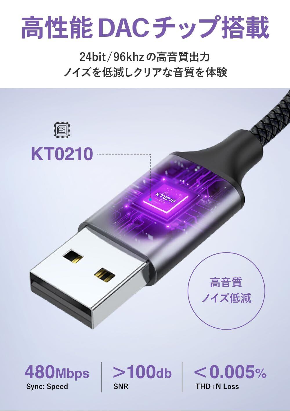 【USBオーディオ変換アダプター】USBポートを3.5mm TRRS(4極)ミニジャックに変換するオーディオアダプターです。ヘッドホンとマイクが一体化した3.5mmプラグに対応し、高音質なサウンドでビデオチャット、ボイスチャット、音楽鑑賞、ゲームを楽しむことができます。パソコンでの音声入力や出力に関する悩みを解決する、便利なアイテムです。※注意:本製品はUSBポートからオーディオへの変換を行うためのものです。ノイズ軽減を目的とする場合は別途ノイズフィルタをご用意ください。