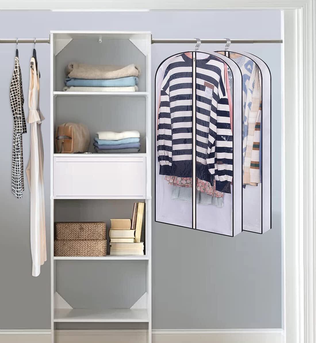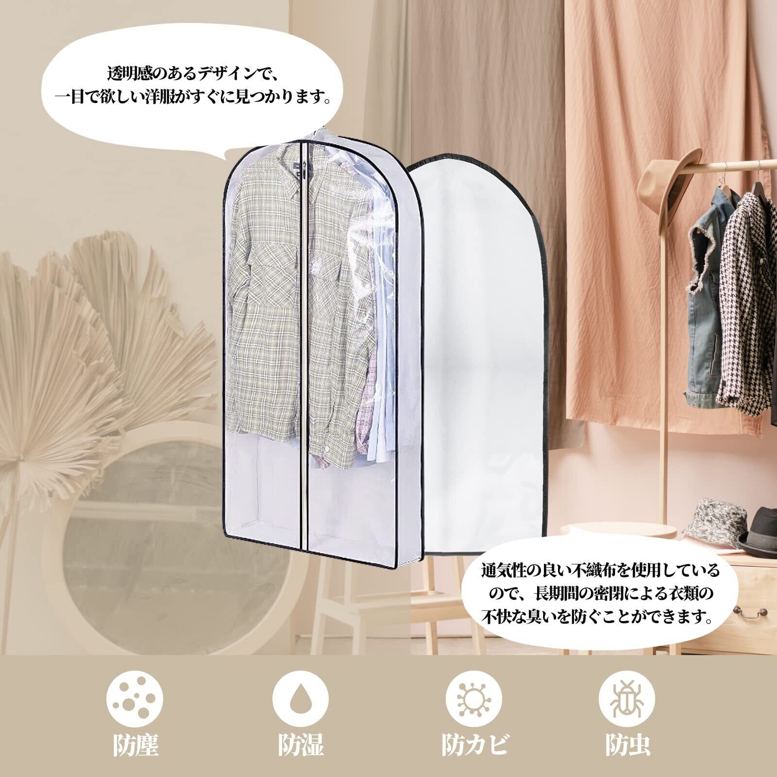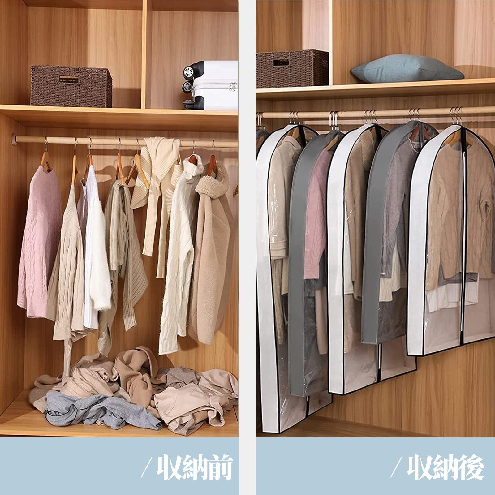 表面が透明フィルムなので中の洋服が見やすく。後ろは不織布なので通気性も良く、湿気も埃もカビも無く衛生的に洋服を保管できます。