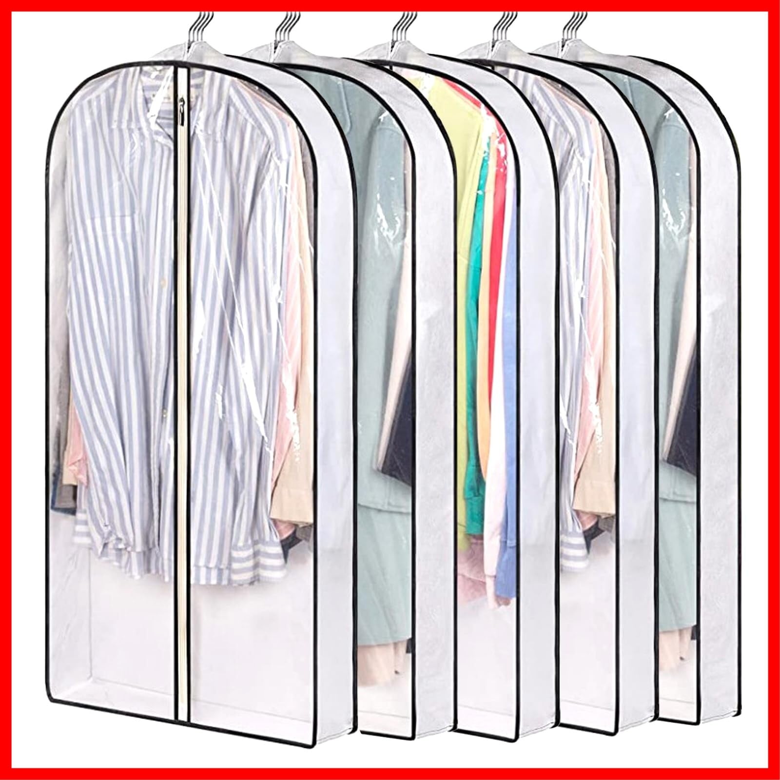 衣類のほこりカバー (ホワイト(ブラック フリル調), 60×130cm-5枚組)