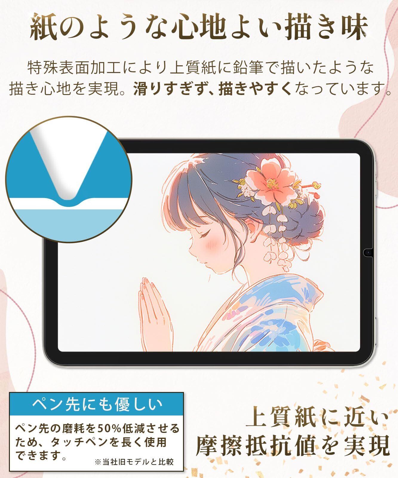 PCフィルター専門工房 iPad Mini (A17 Pro) / iPad Mini 6 (2021 第6世代) 用 ペーパーライクフィルム 紙のような描き心地 フィルム 保護フィルム アンチグレア 反射低減 指紋防止 | hananoki