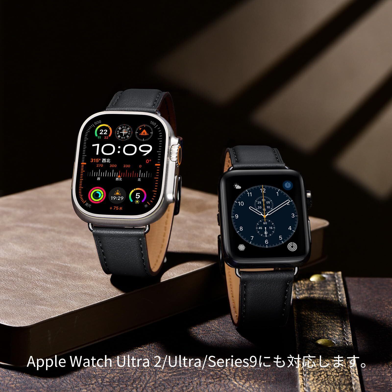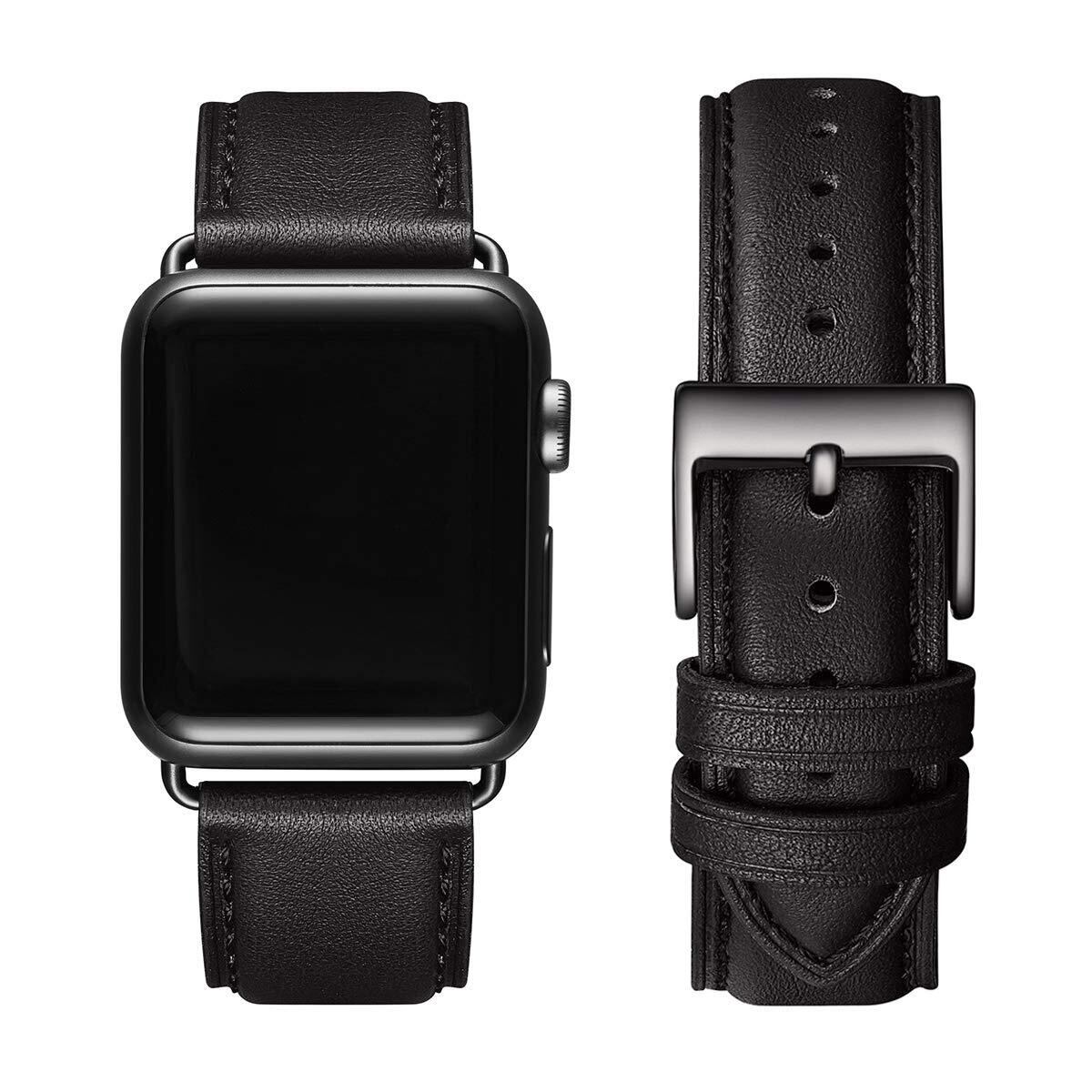 コンパチブル アップルウォッチ バンド 革 46mm 42mm 44mm 45mm 49mm 40mm 41mm 38mm コンパチブル Apple Watch バンド 本革 レザー ビジネス 男女兼用 コンパチブル iWatch Ultra/Ultra2/SE/SE2/Series10/9/8/7/6/5/4/3/2/1に対応(ブラック・ブラック)