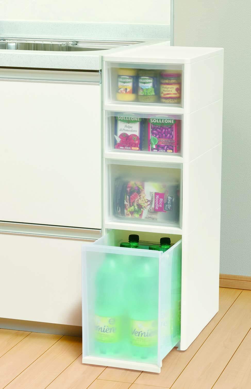 JEJアステージ(JEJ Astage) すきま収納 キッチン収納 リセ ミドルストッカー 日本製 完成品 S2M1L1段 コロ付 ホワイト/クリア 幅26×奥行40×高さ85cm | hananoki