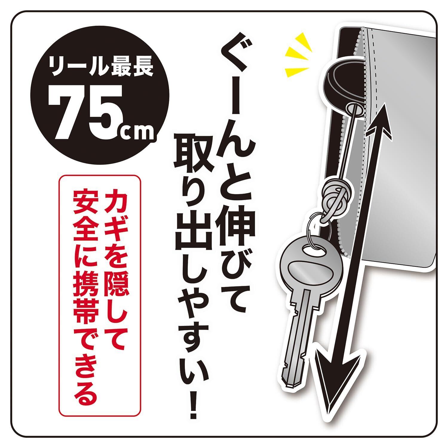 【特徴1】長く伸びるリール内蔵でカギの紛失予防に