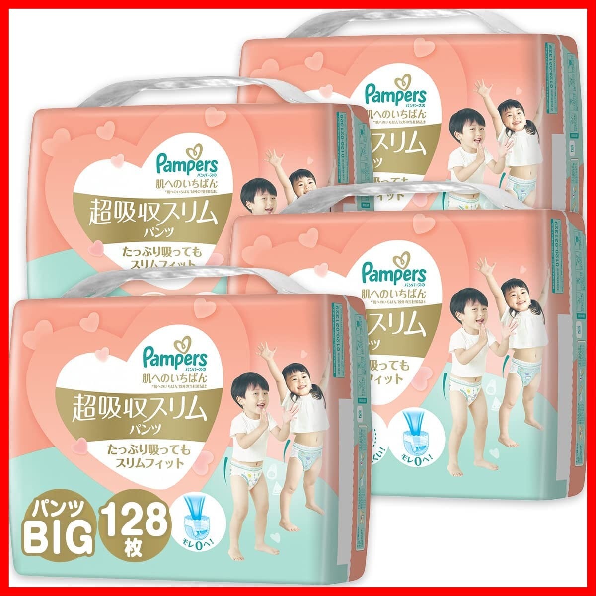 【パンツ ビッグサイズ】パンパース オムツ 肌へのいちばん 超吸収スリムパンツ (12~22kg) 128枚(32枚x4パック) [ケース品]