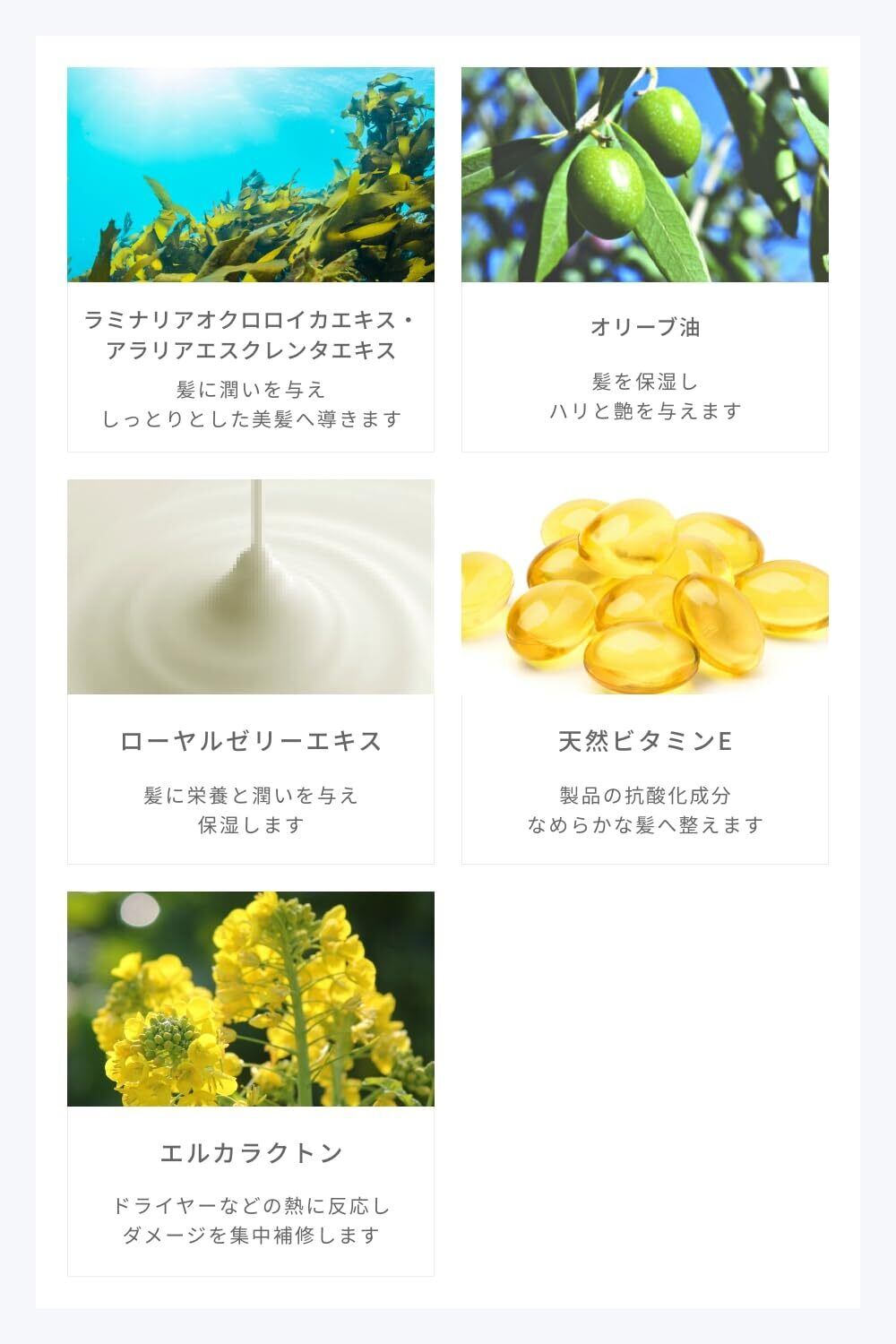 【海藻のエキスで髪に潤いを】世界中の25,000種から製品ごとに選んだ、アミノ酸やミネラルを多く含む海藻のエキスを配合しています。