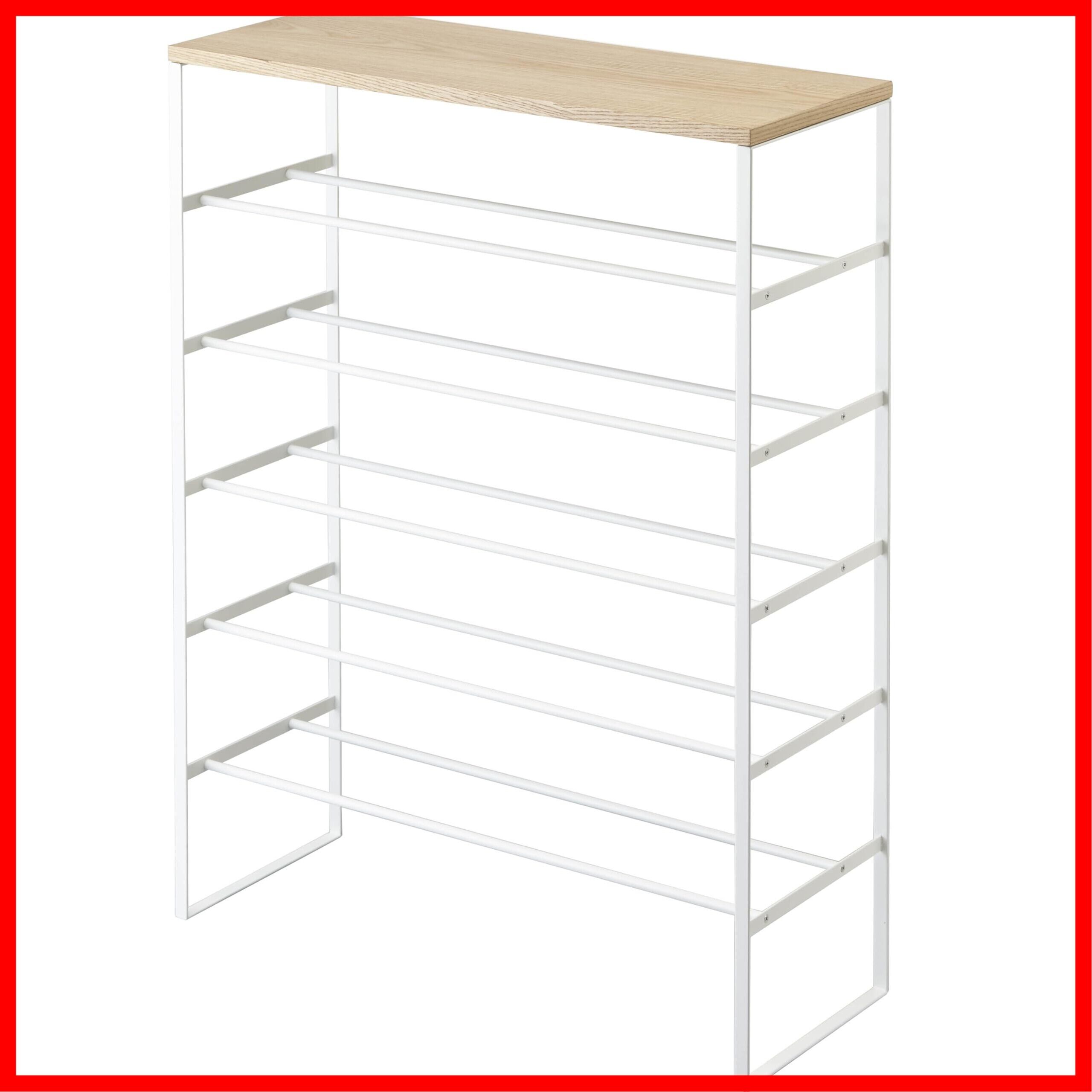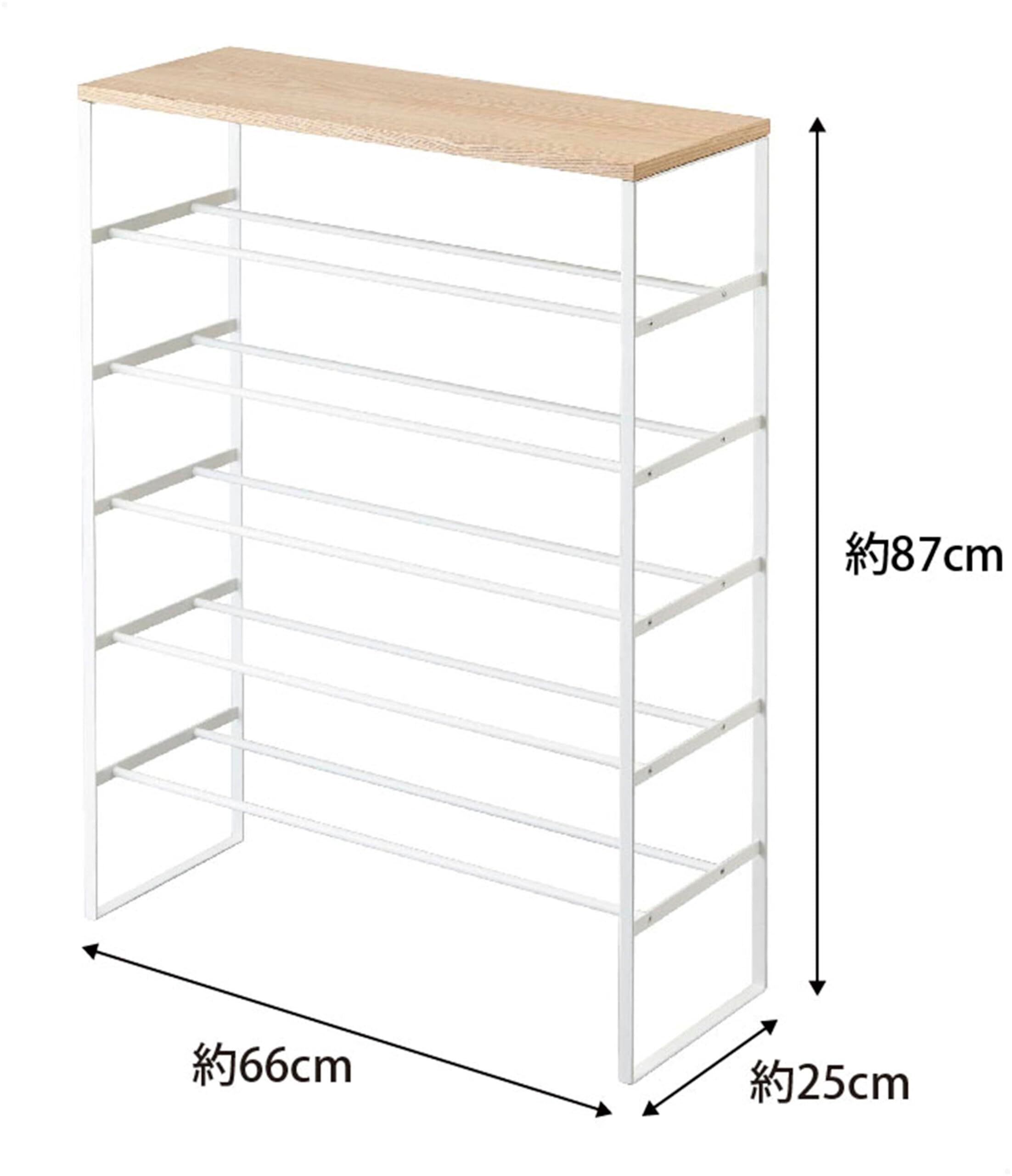 山崎実業(Yamazaki) 天板付き シューズラック 6段 ホワイト 約W66×D25×H87cm タワー tower 下駄箱 靴 収納 フック付き 3369