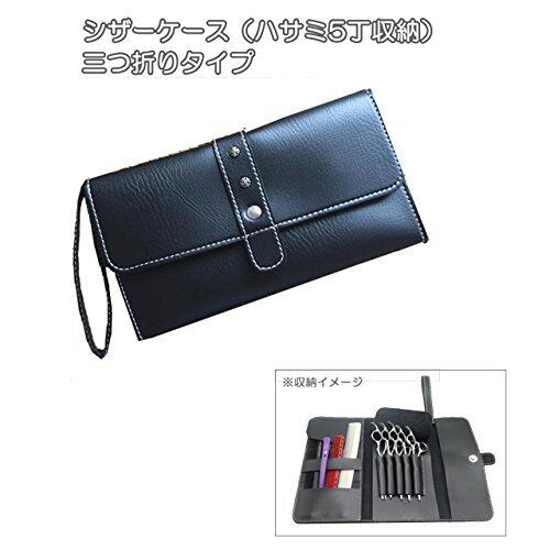 シザーケース 5丁 三つ折り 美容師 トリマー フローリスト ケース 革 園芸 ハサミ シザーバッグ 理容師 サロン はさみ フラワーショップ 花屋 (ブラック)