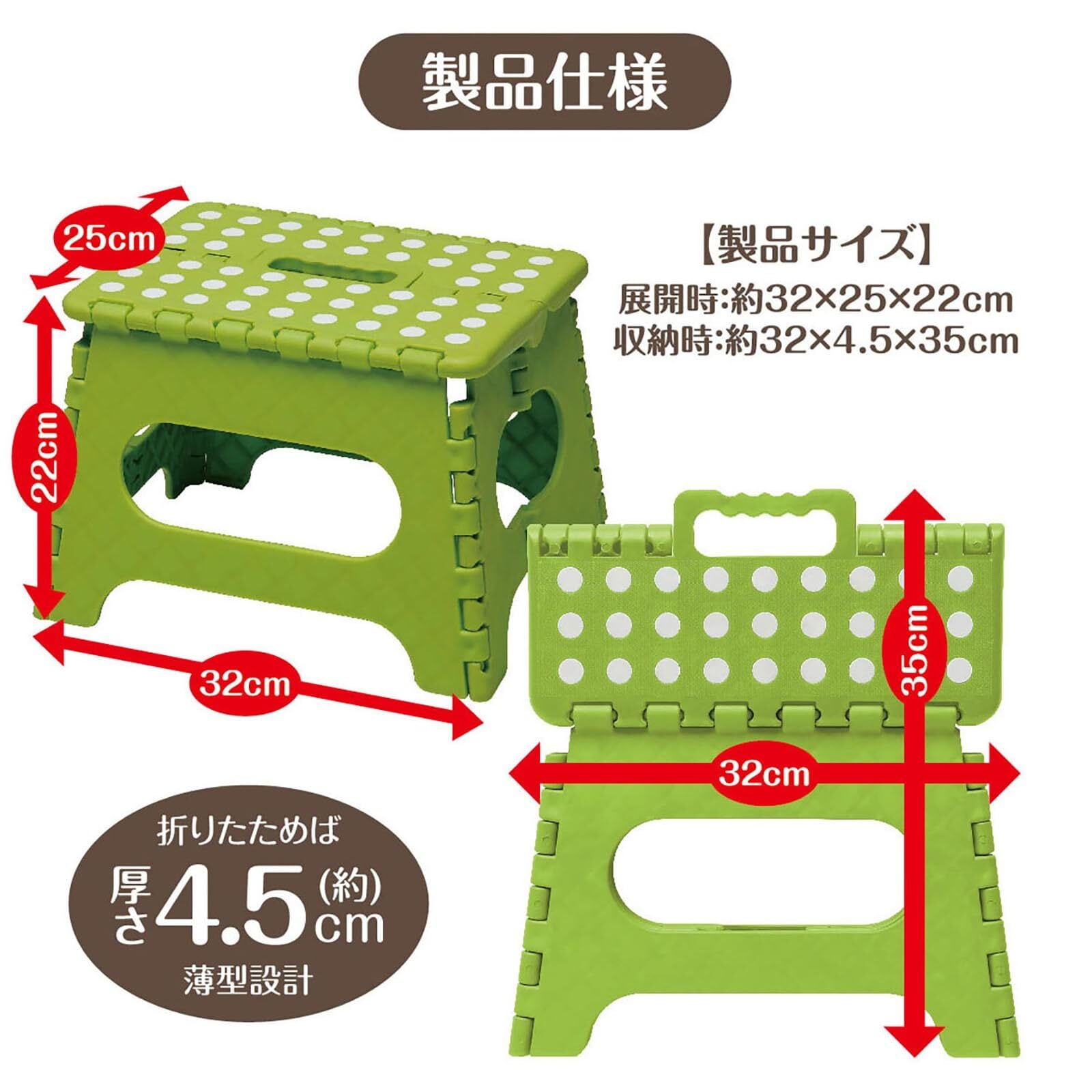 サイズ(約):使用時/32×25×22cm、収納時/32×35×4.5cm、天板サイズ/29×22cm