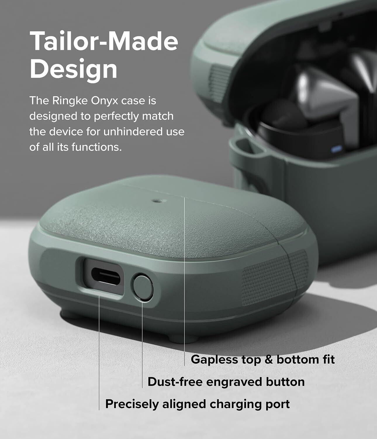 【Ringke】Galaxy Buds 3 / 3 Pro Onyx Magnetic ケース TPU素材 衝撃吸収 紛失防止 傷防止 保護ケース イヤホン保護 マグネット搭載 ソフトフレキシブル ブルートゥースワイヤレスイヤホン ギャラクシー バッズ 3 / 3プロ (キーリング&カラビナ付き) - Sage Green | hananoki