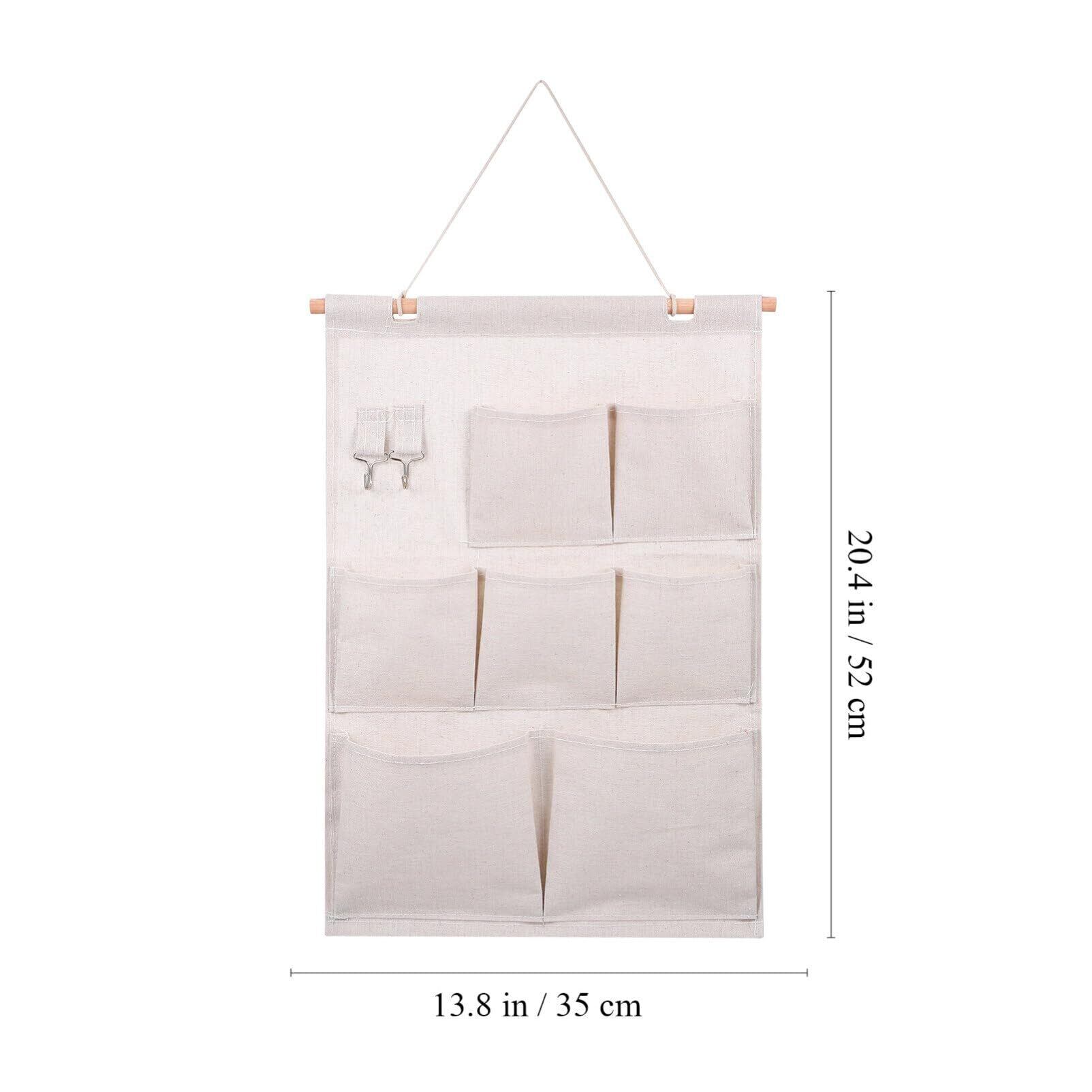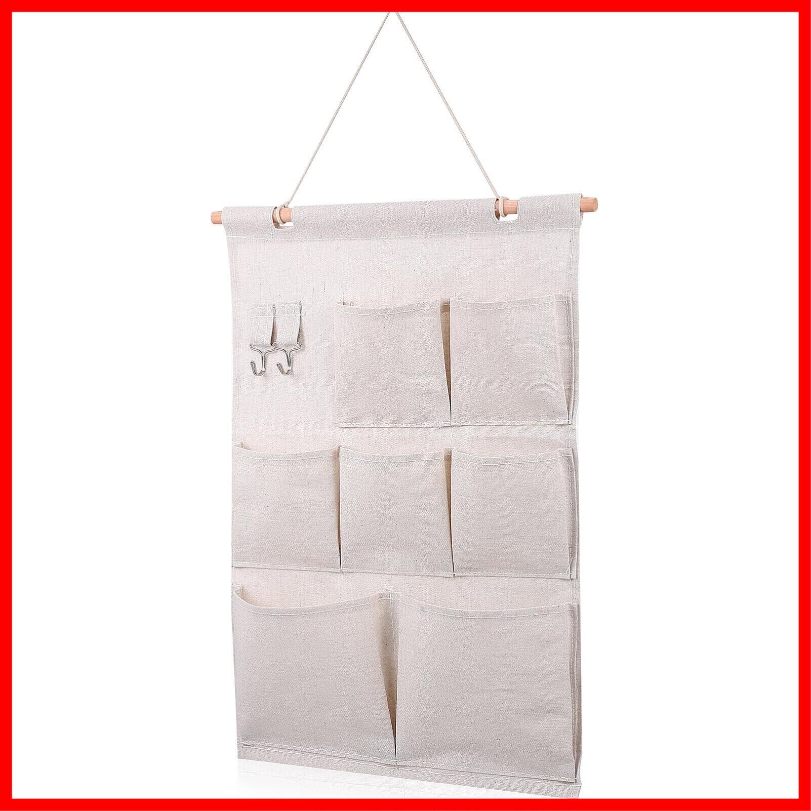 【製品仕様】:吊り下げ収納バッグ サイズ:約52*35cm 素材:綿麻、アイロンフック。 重さは約160gで汚れたら手洗い可能です。使用しない時は折りたたんでコンパクトに収納できます。