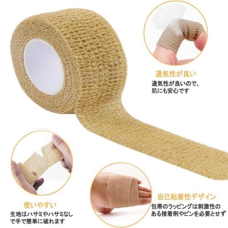 DFsucces 包帯 自己粘着包帯 弾性 テーピングテープ スポーツテープ 不織布凝集 伸縮性 通気性 敏感肌に適しています 多機能 家庭用 (肌色, 2.5cm*4.5m)