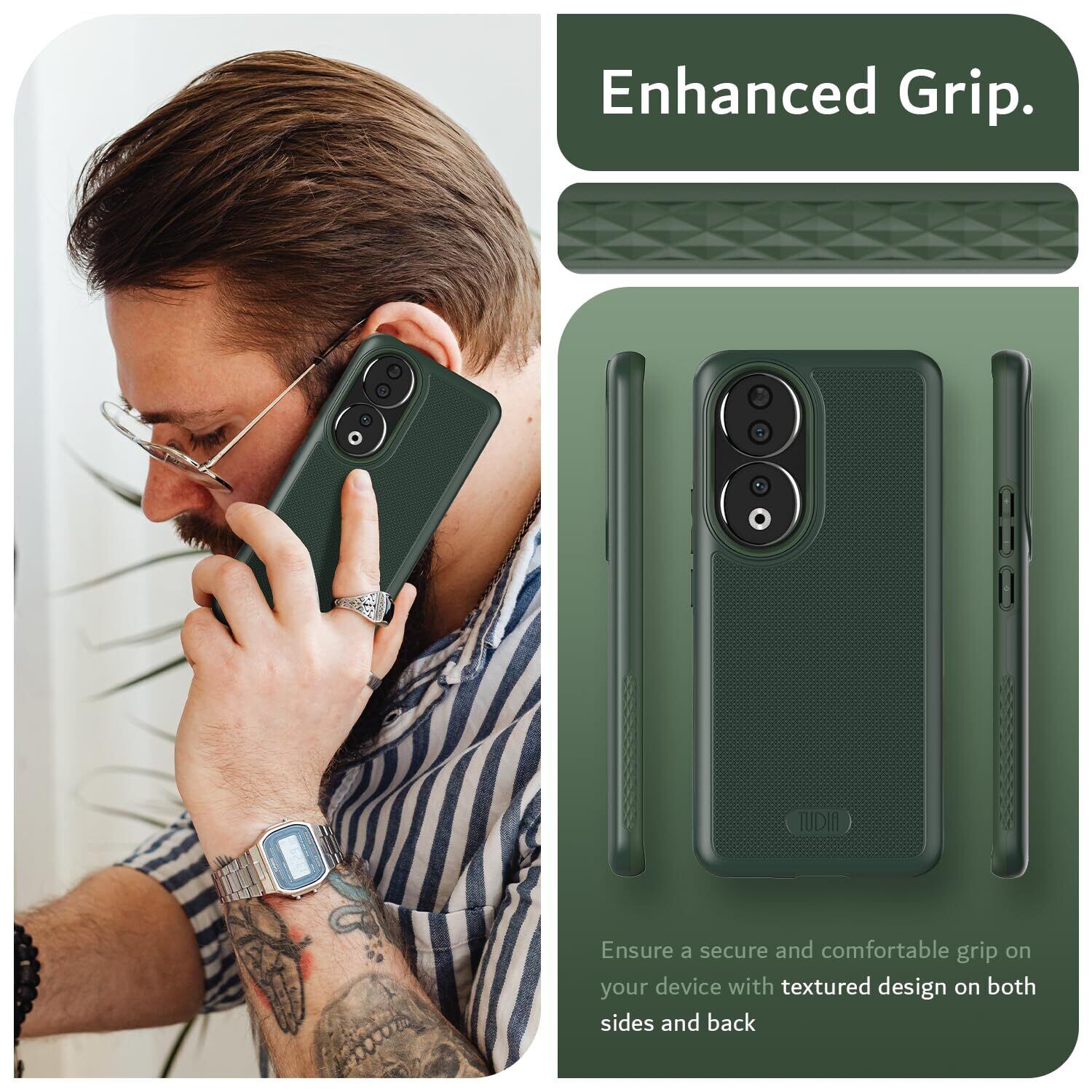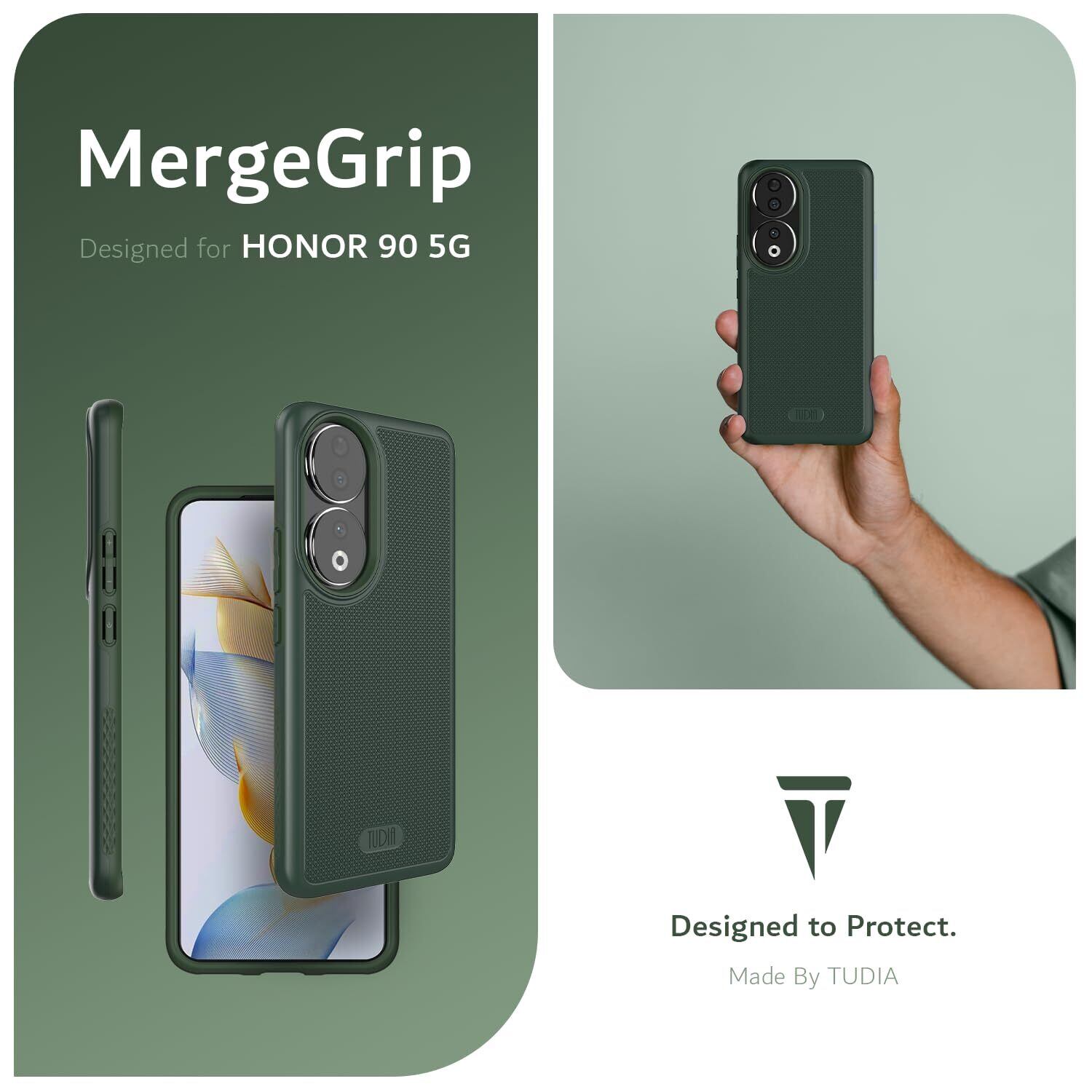 TUDIA DualShield グリップ対応 with Honor 90 場合, [MergeGrip] 二層耐衝撃スリム軍事グレードノンスリップタフヘビーデューティ保護電話ケースカバー (パイングリーン)
