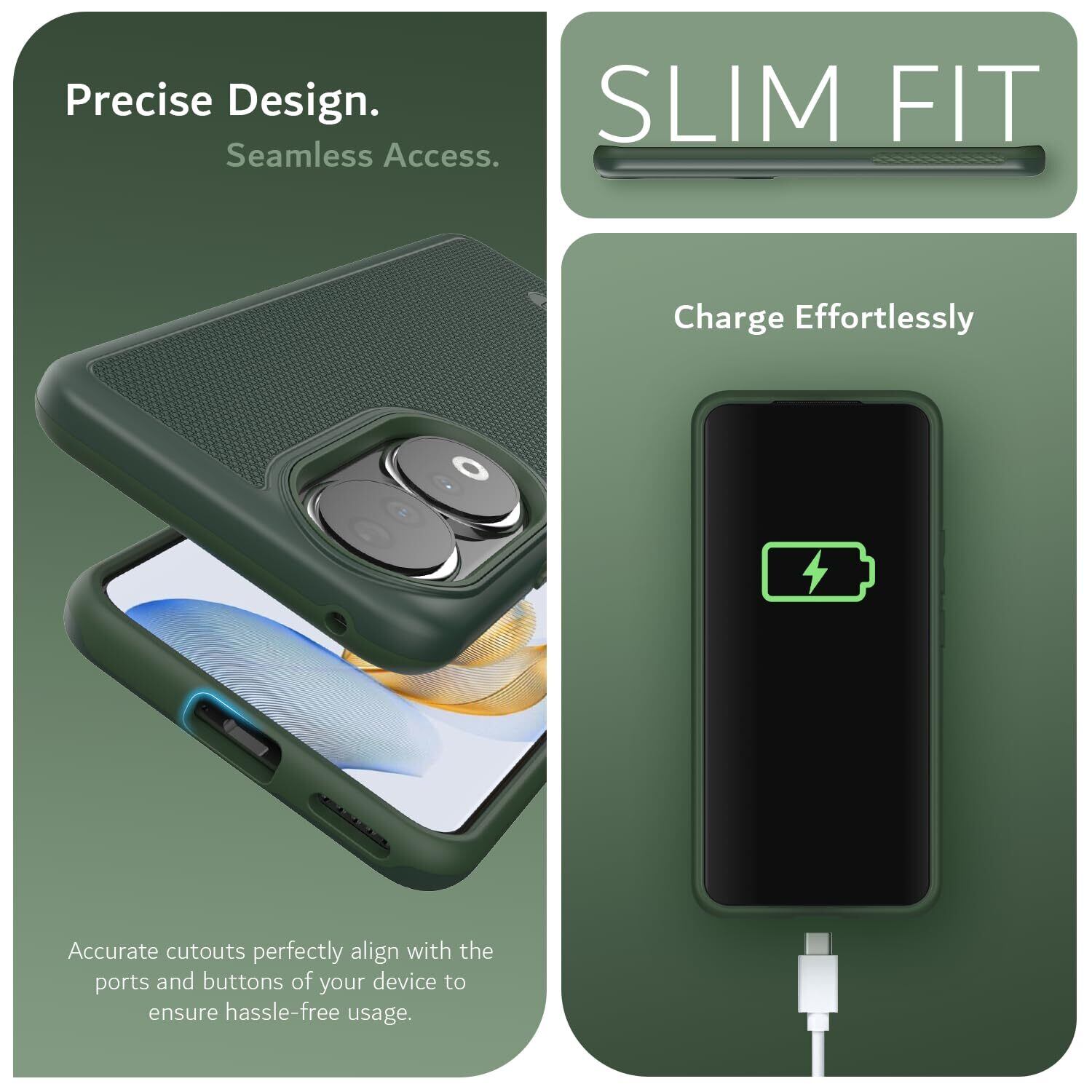 TUDIA DualShield グリップ対応 with Honor 90 場合, [MergeGrip] 二層耐衝撃スリム軍事グレードノンスリップタフヘビーデューティ保護電話ケースカバー (パイングリーン) | hananoki