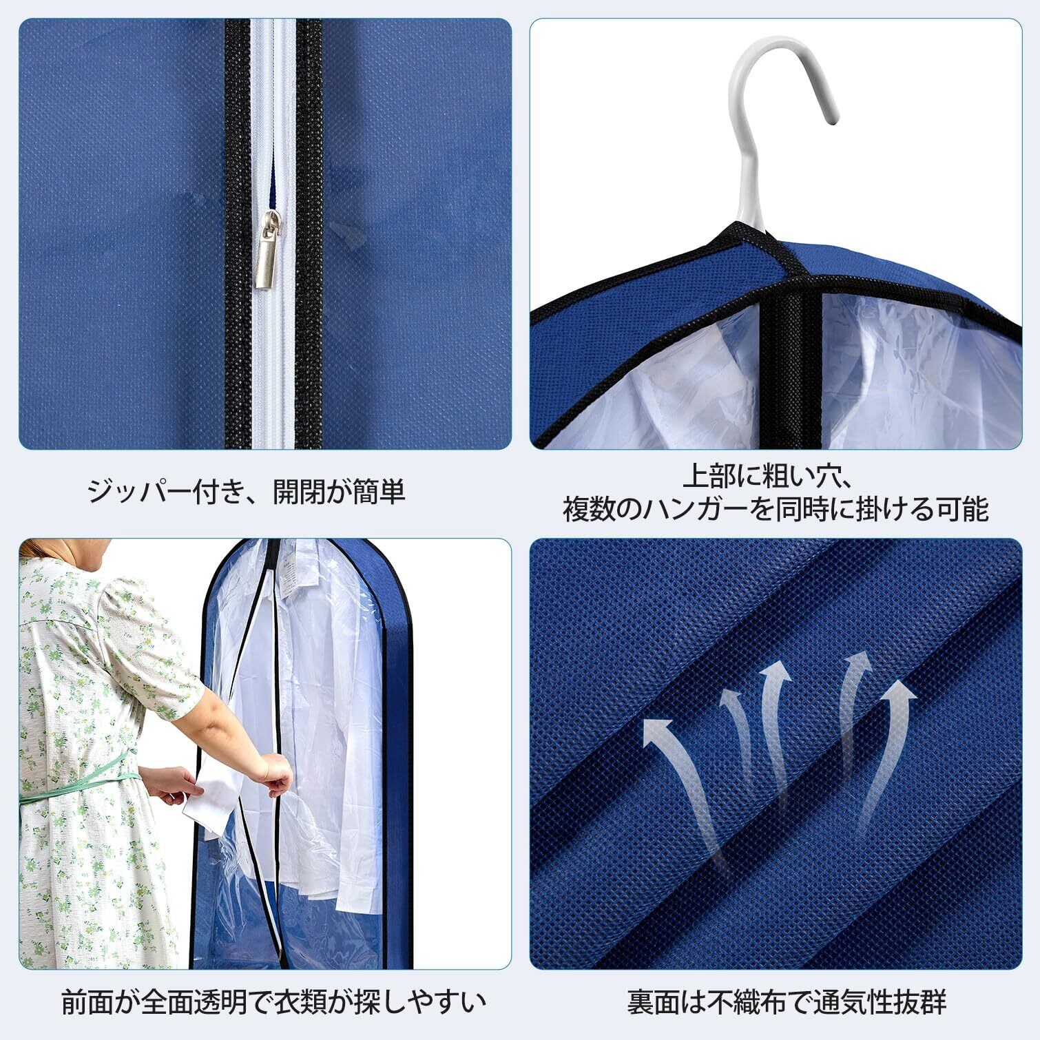 VECELO 衣類カバー 防塵カバー スーツカバー ハンガー 5枚組 マチ付き 湿気取り 防汚 吊り下げたまま使えるゆったりシワになりにくいマチ付き洋服カバー 通気性の良い不織布 透明窓 センターファスナー 衣装カバー 125CM | hananoki
