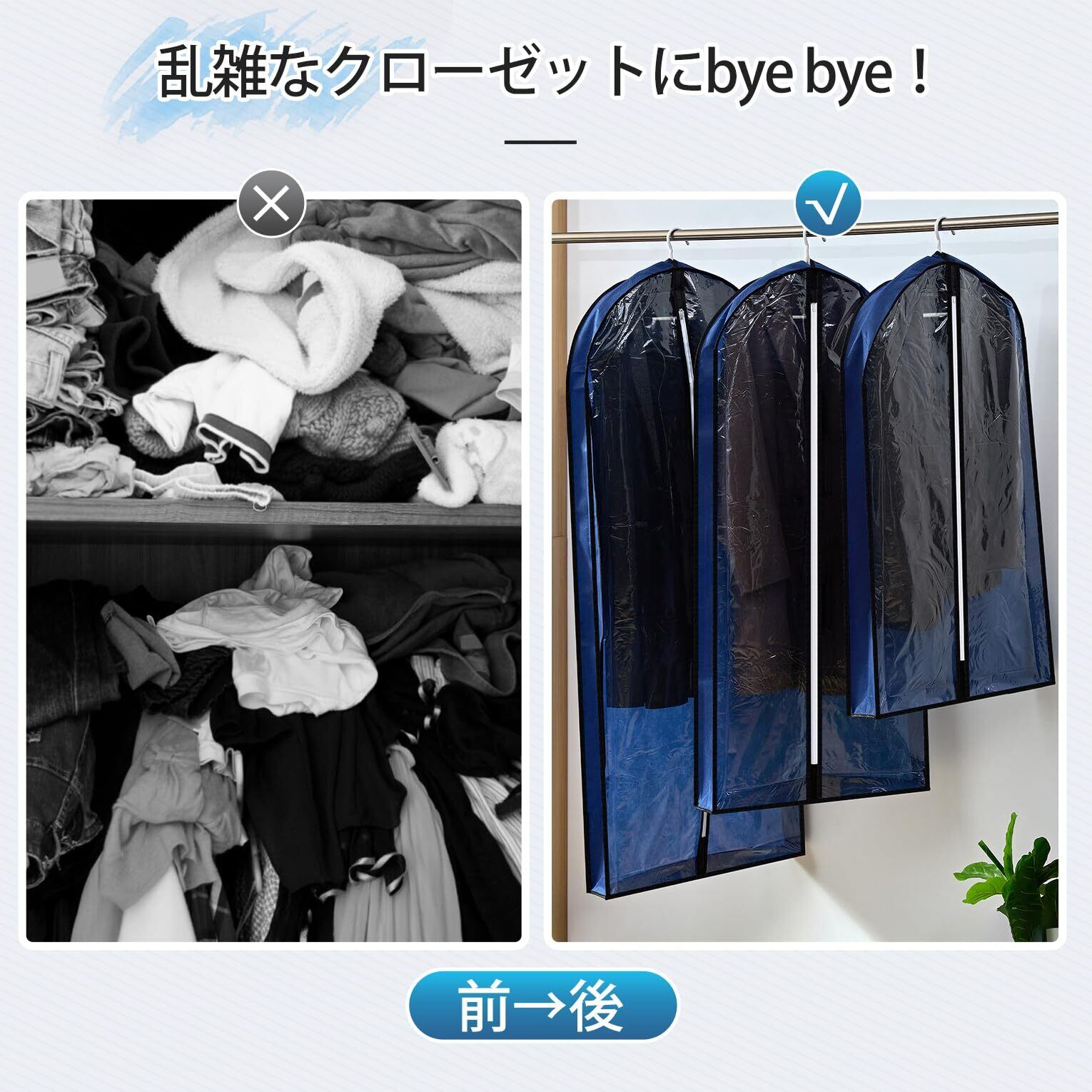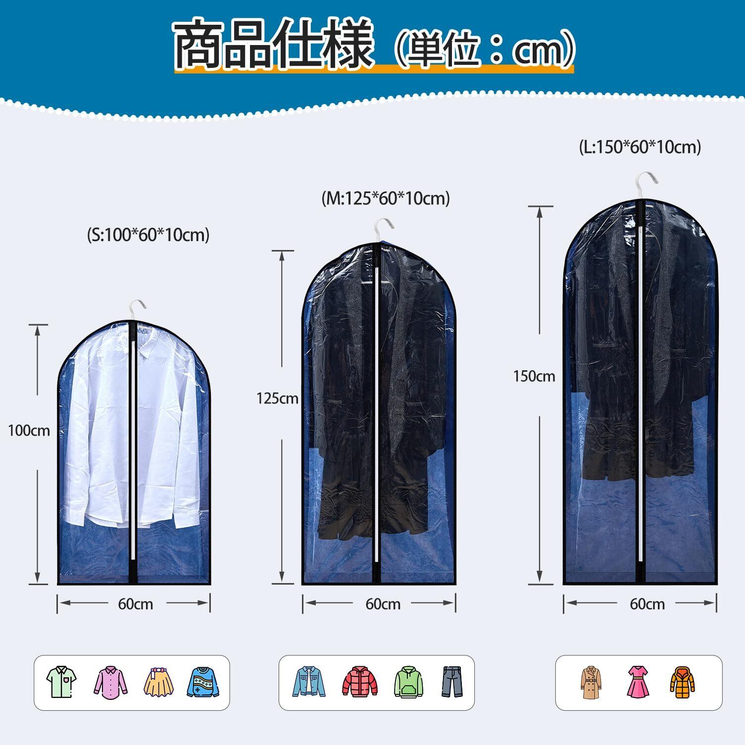 【可視窓付き】前面は完全に透明で、防塵カバーを開けずに探したい衣類を確認できます。【マチ付きシワになりにくい】マチを設けた立体的なデザインで、衣類を入れても圧迫されずシワになりにくいです。