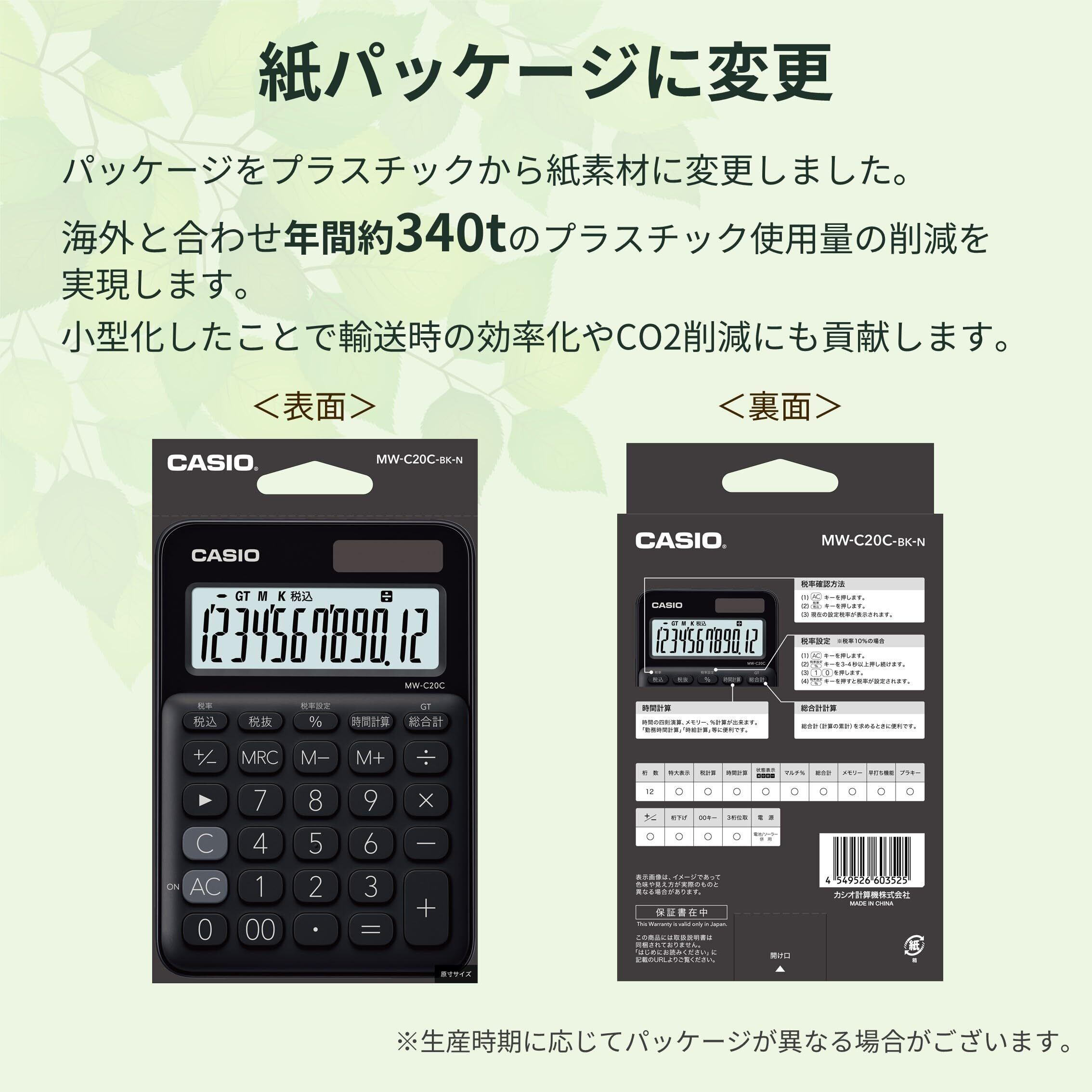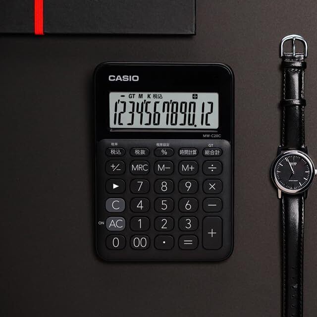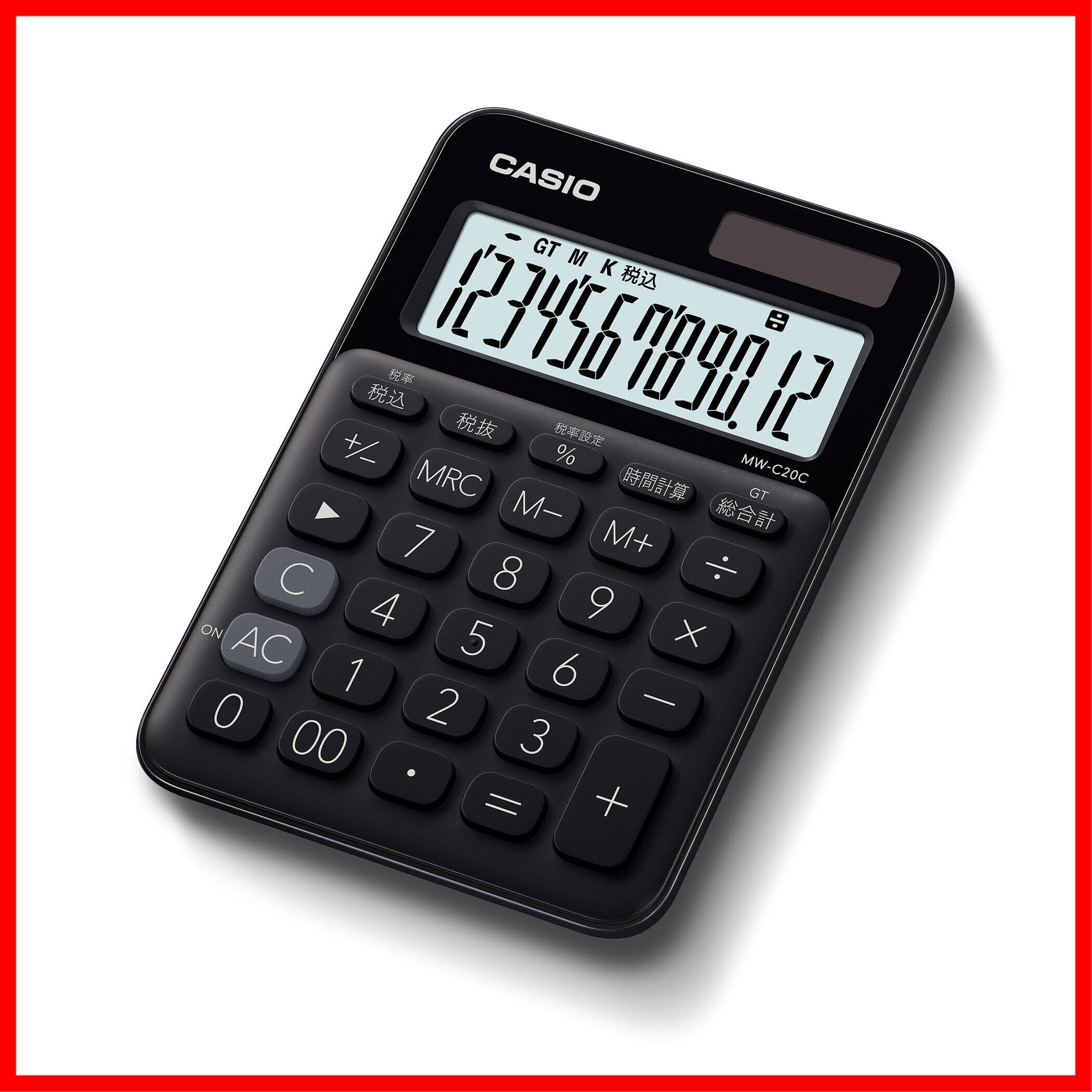カシオ カラフル電卓 ブラック 12桁 ミニジャストタイプ MW-C20C-BK-N