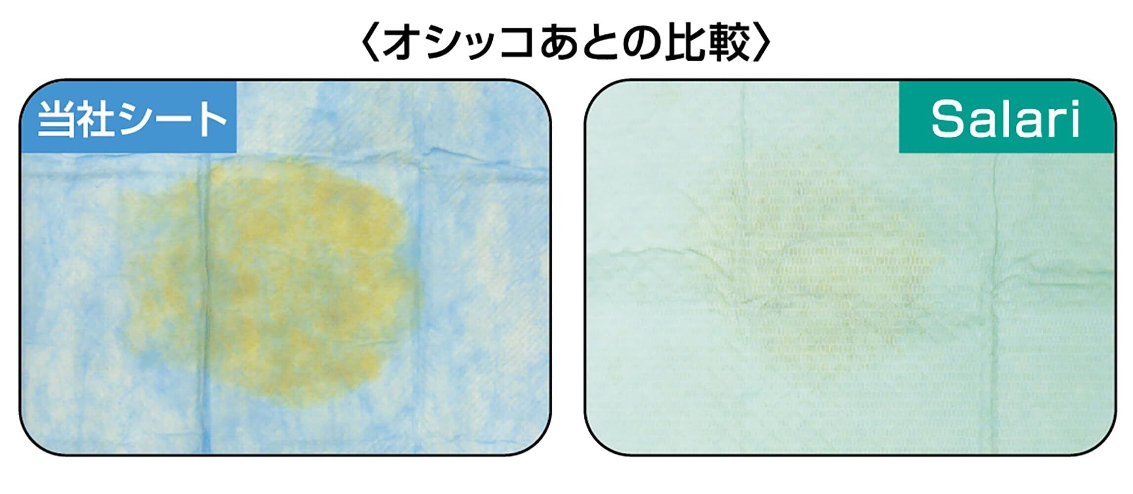 立体ドライメッシュシートで足ヌレもフチモレもせず、表面はサラサラ。天然ヒノキの消臭力で、お部屋の空気はいつも快適。パステルグリーンのシートでオシッコ跡が目立ちません。ウンチもとりやすいサラサラシートで、清潔感を保てます。オシッコをしっかり吸収するから、取り替える手間が省け、ゴミの量も少なくて済みます。<ワイドサイズ>60X44cm